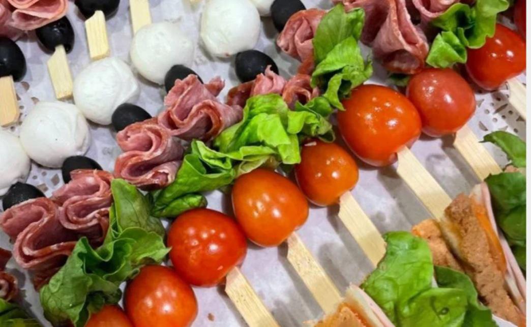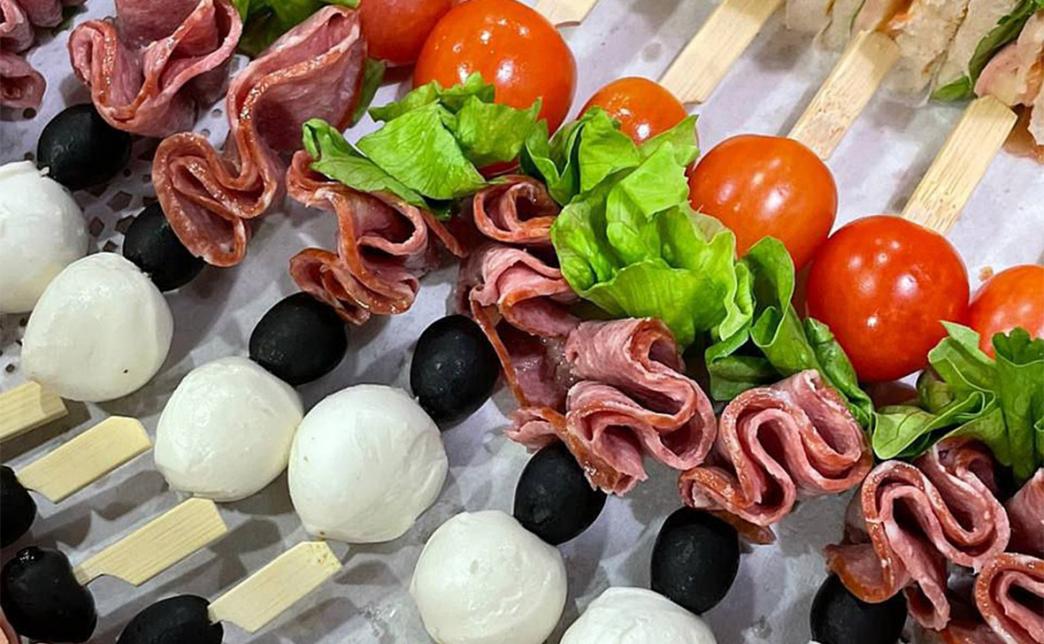 - канапе из томата черри, салями, салата, сыра моцарелла, маслины - 10 шт.