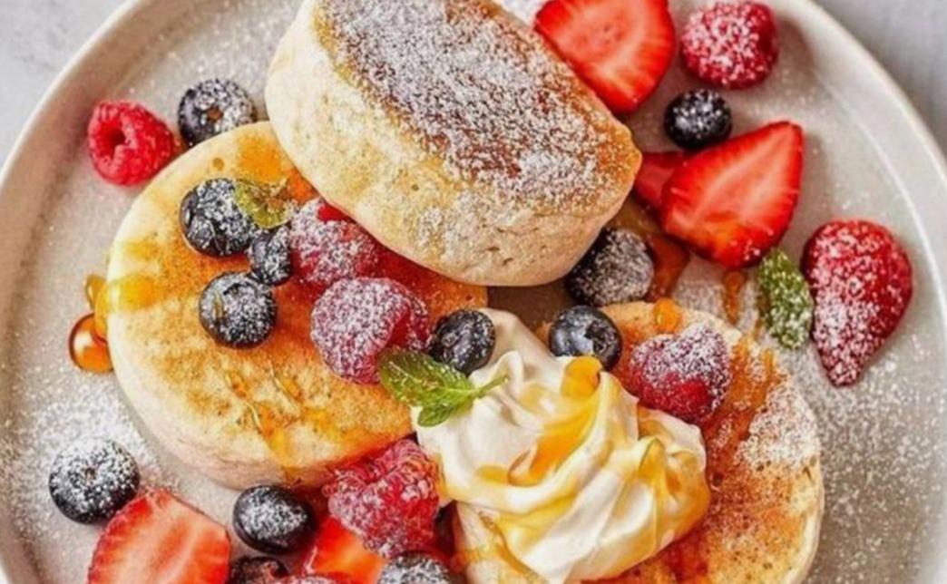 Состав сета: сырники из рикотты, ягоды, сахарная пудра, зелень