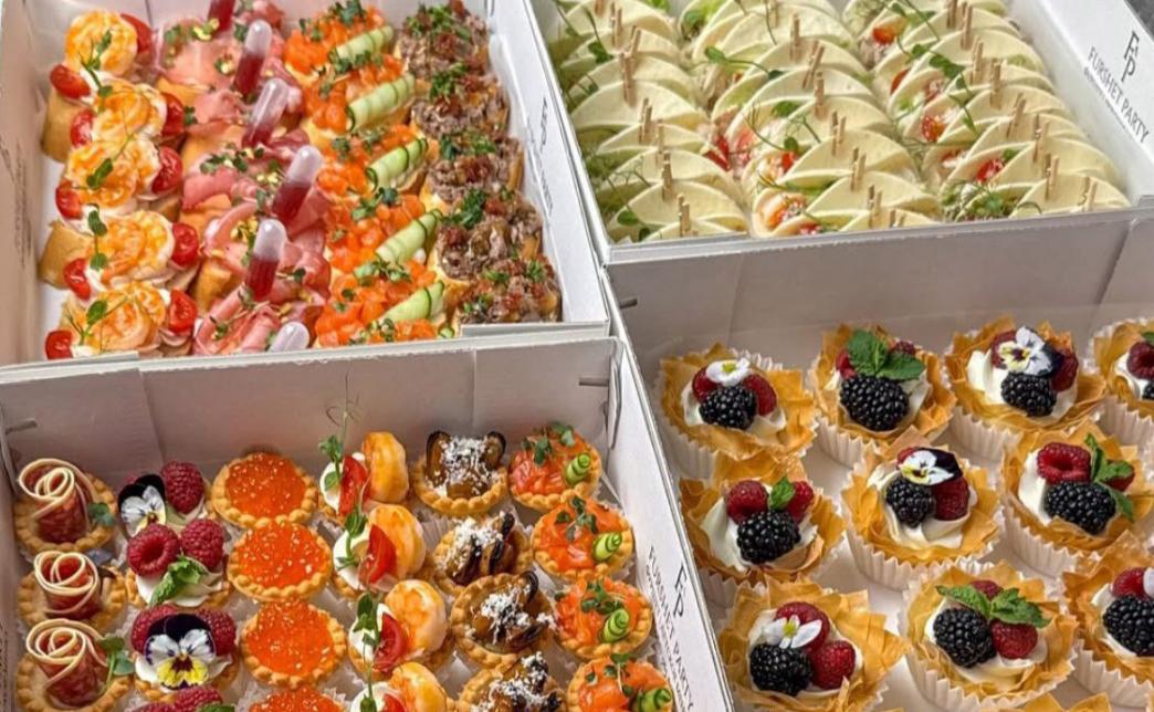 Состав: шашлык 3 вида, салат овощной, картофель фри, картофель по-деревенски, рулетики из лаваша с начинкой, тарталетки, канапе, сладкий десерт, соусы