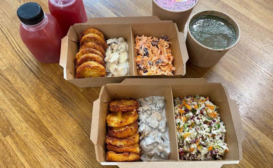 Сет №2 35 р. 41,60 р. Состав сета: - драники с мачанкой (L) - драники c курицей и грибами (L) - салат (на выбор, 2 шт) - суп (на выбор, 2 шт) - напиток от "potatolab" (на выбор, 2 шт)