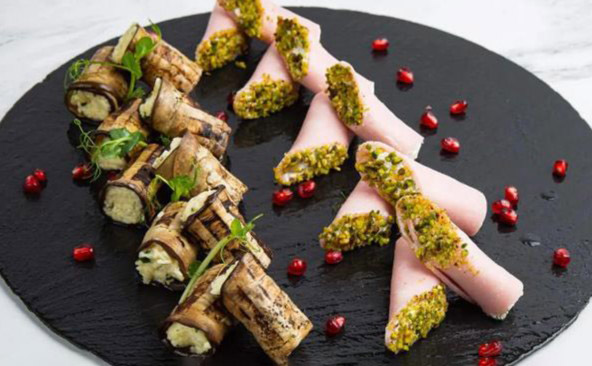 - рулетики из ветчины с крем сыром и фисташками (10 шт)