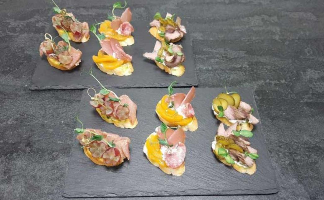 - брускетта с копченой свиной корейкой и виноградом (4 шт)