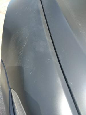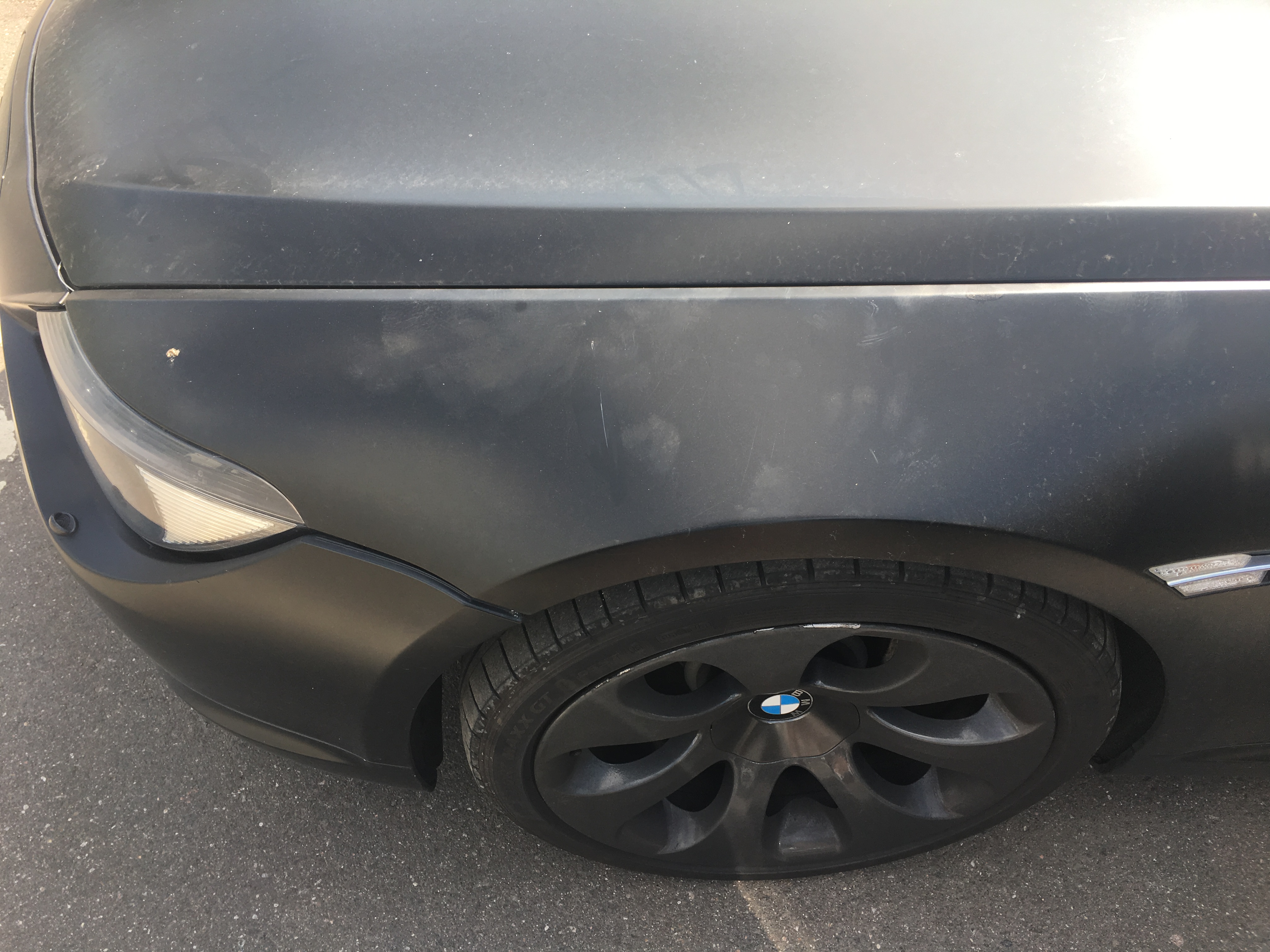 В конечном итоге покраска крыла в ~130$ (по матовому покрытию полировка невозможна) и чистка сидения.