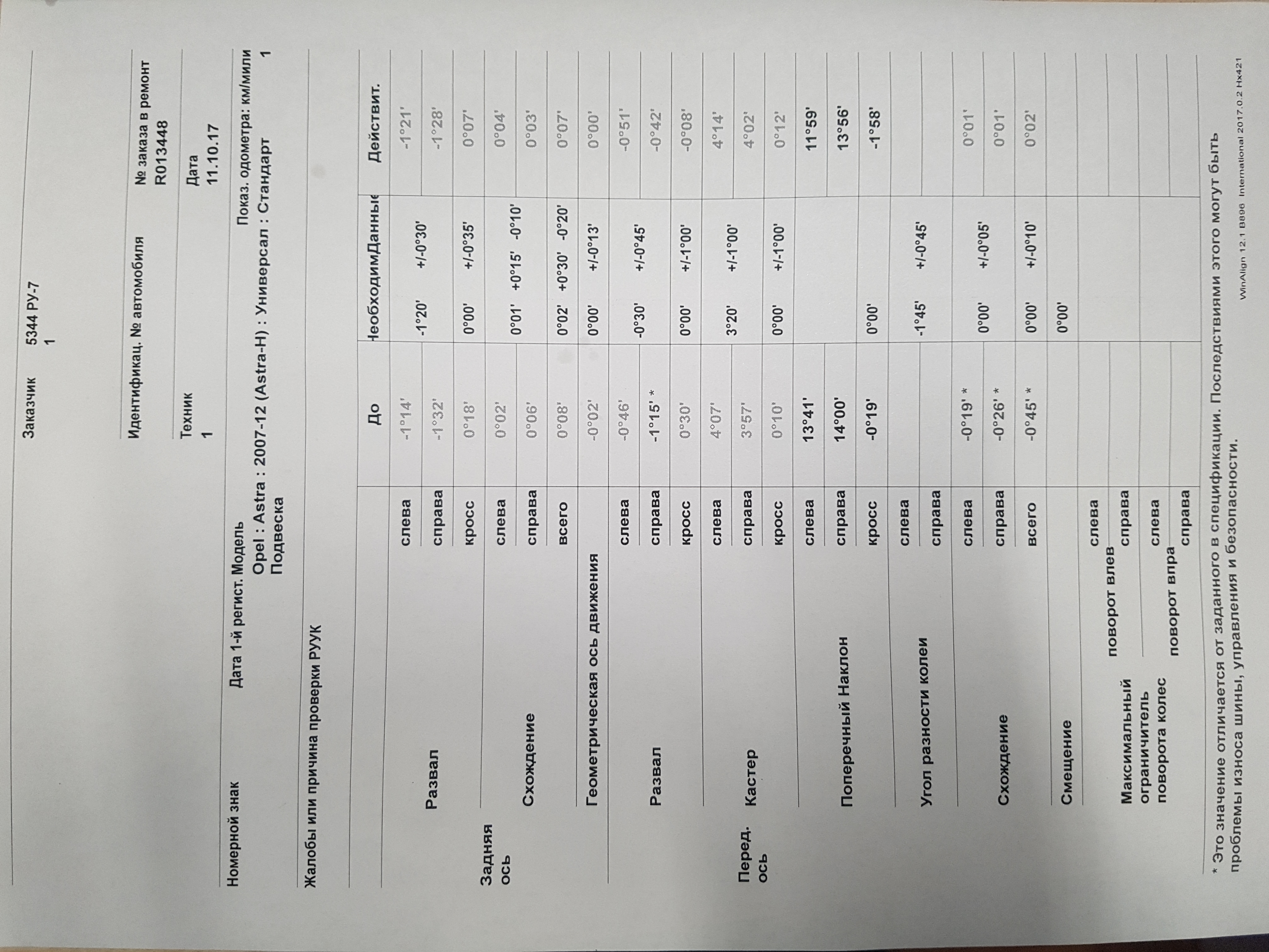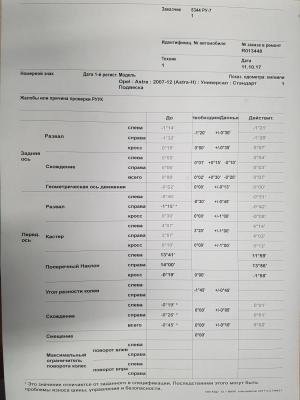 Развал-схождение на данном авто был отрегулирован по всем правилам, а также согласно спецификациям Вашего автомобиля. Чтобы не быть голословными, приводим скрин распечатки с углами "До" и "После" Вашего автомобиля, который внесет ясность в суть Вашей проблемы.