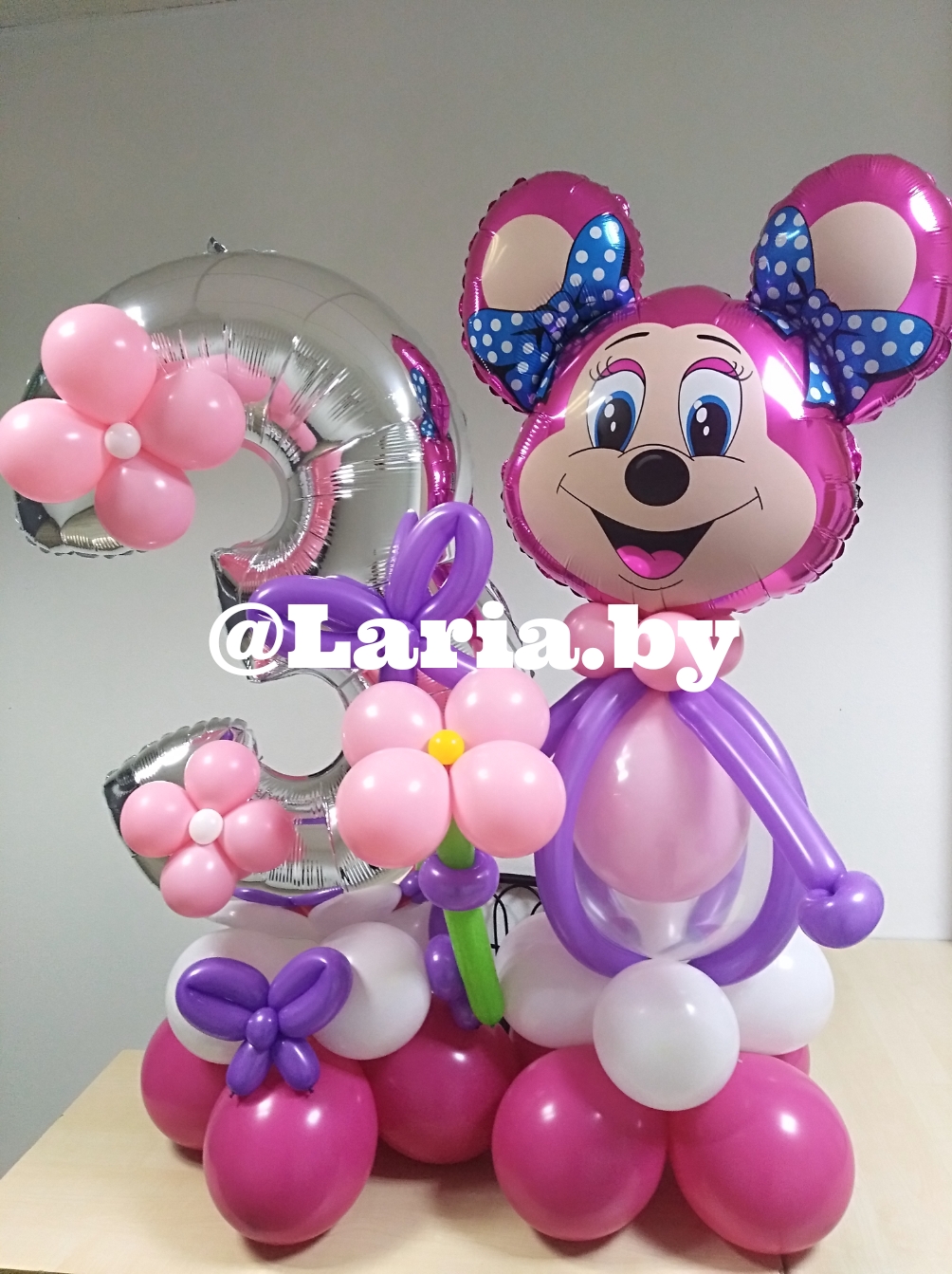 Доставка вовремя, все понравилось. Композиция стояла дольше 3 недель, голова Мини-Мауса лежит в хорошем состоянии до сих пор, а прошло уже 1.5 месяца!