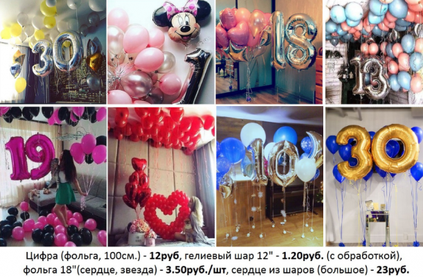 🎈 12 дюймов с рисунком (30 см) с гелием: 2,30 руб. 2,50 руб.