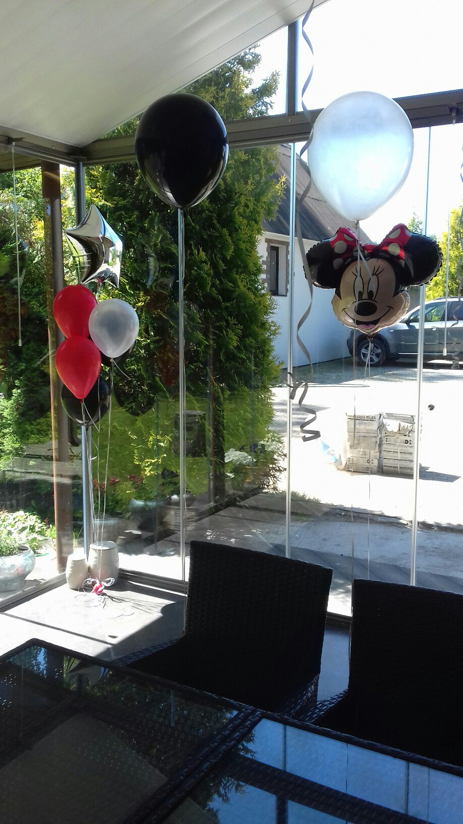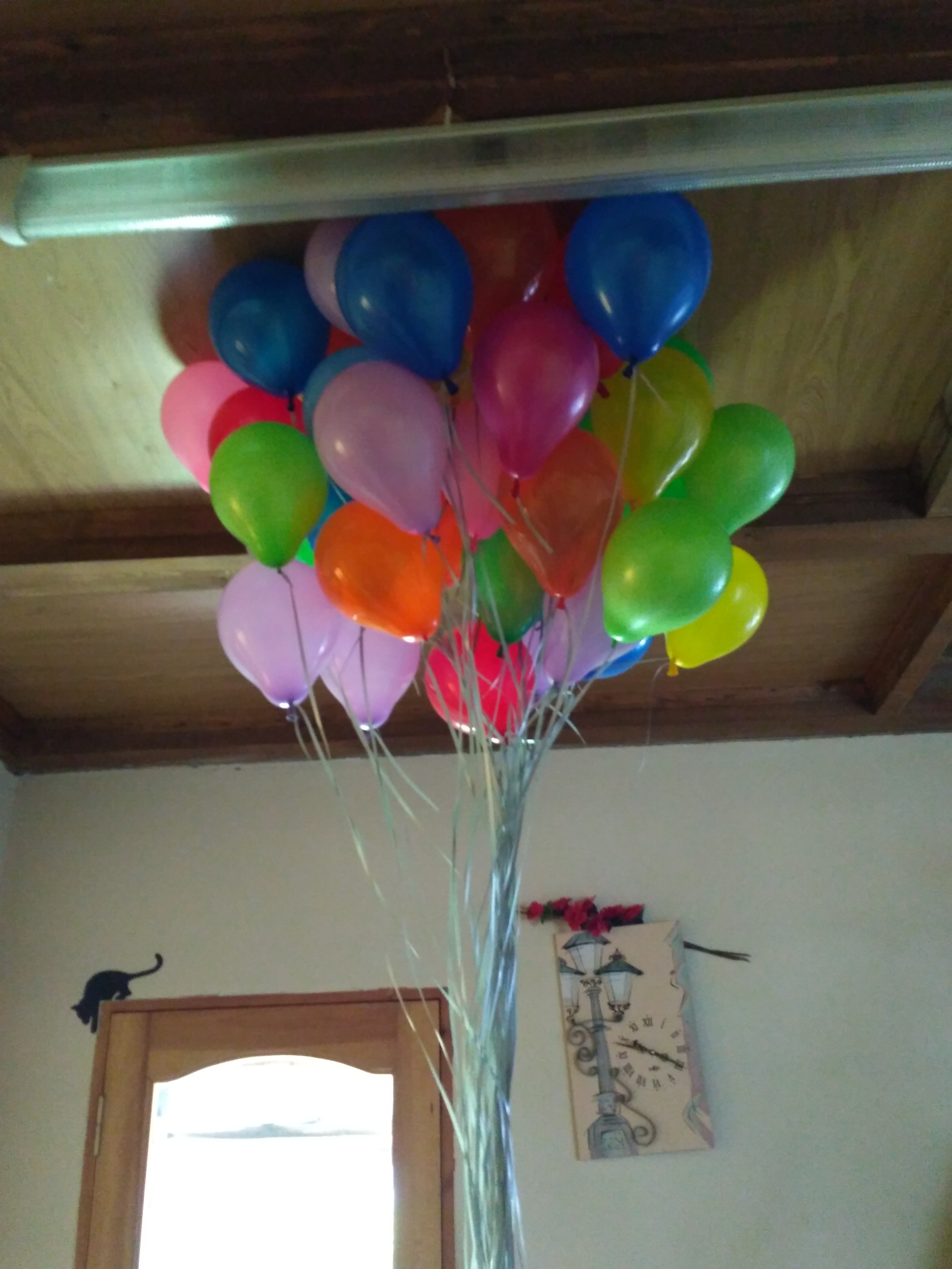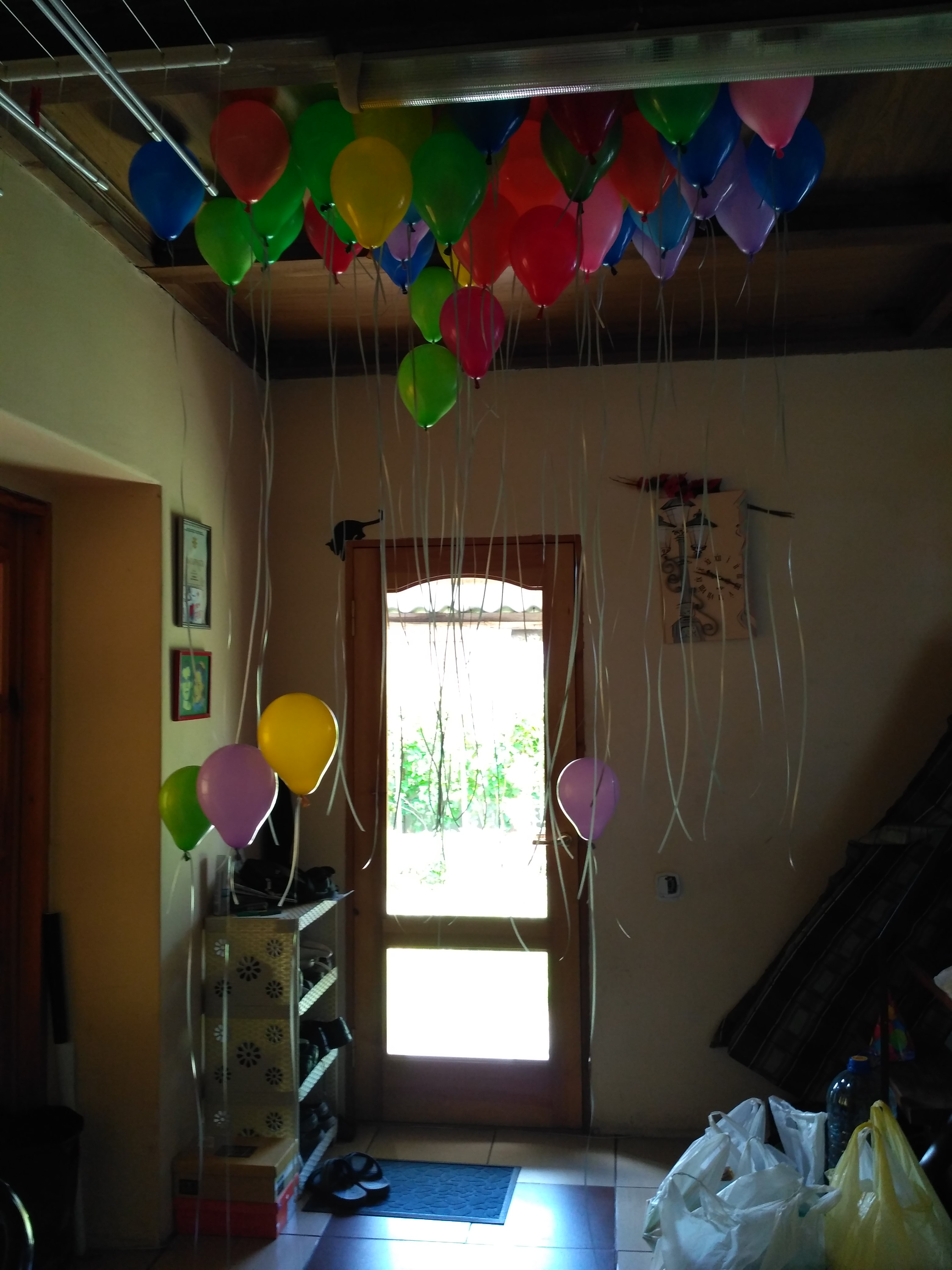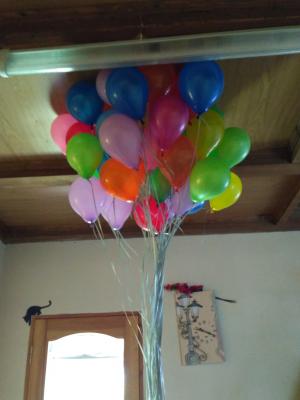 К сожалению, пару шаров через 3 часа уже не поднимались высоко. А несколько просто улетело, потому что были привязаны на самый конец ленточки.