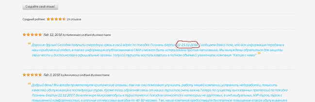 6. “И совершенно не позволительно оскорблять водителя и компанию в целом. Очень долго мы «переваривали» и вообще не хотели отвечать на ту грязь, которую выливали и продолжают выливать отдельные туристы из поездки Познань-Берлин. Далеко не все разделяют Ваши негативные эмоции и мы считаем своим долгом  предостеречь других туристов не слишком доверять чужому мнению, а только своему!!! В итоге хотим донести простую истину: «Люди – Вы не звери. Помните об этом!». Никаких проблем, кроме межличностного конфликта отдельных туристов и водителя с руководителем не было”