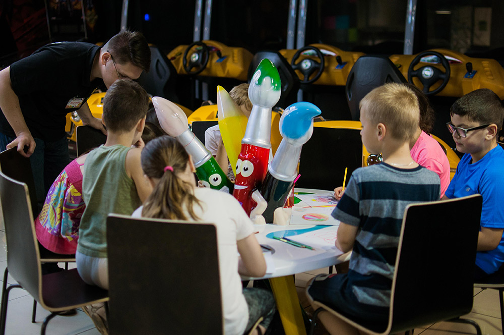 - В стоимость входит: посещение игровых площадок и кинотеатра, мастер-классы