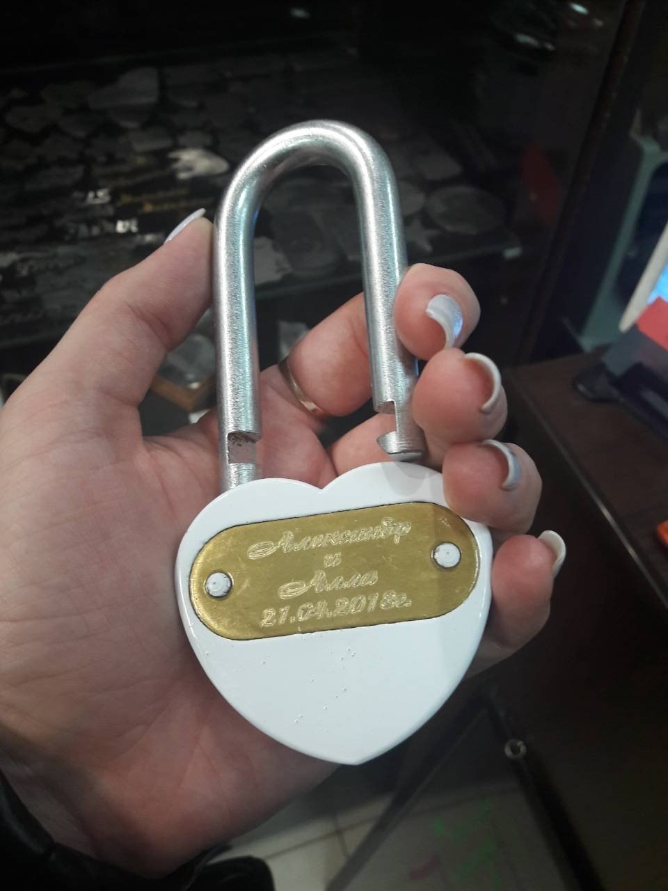 Делала гравировку 2х свадебных замочков, сделали минут за 10, результатом довольна, спасибо.