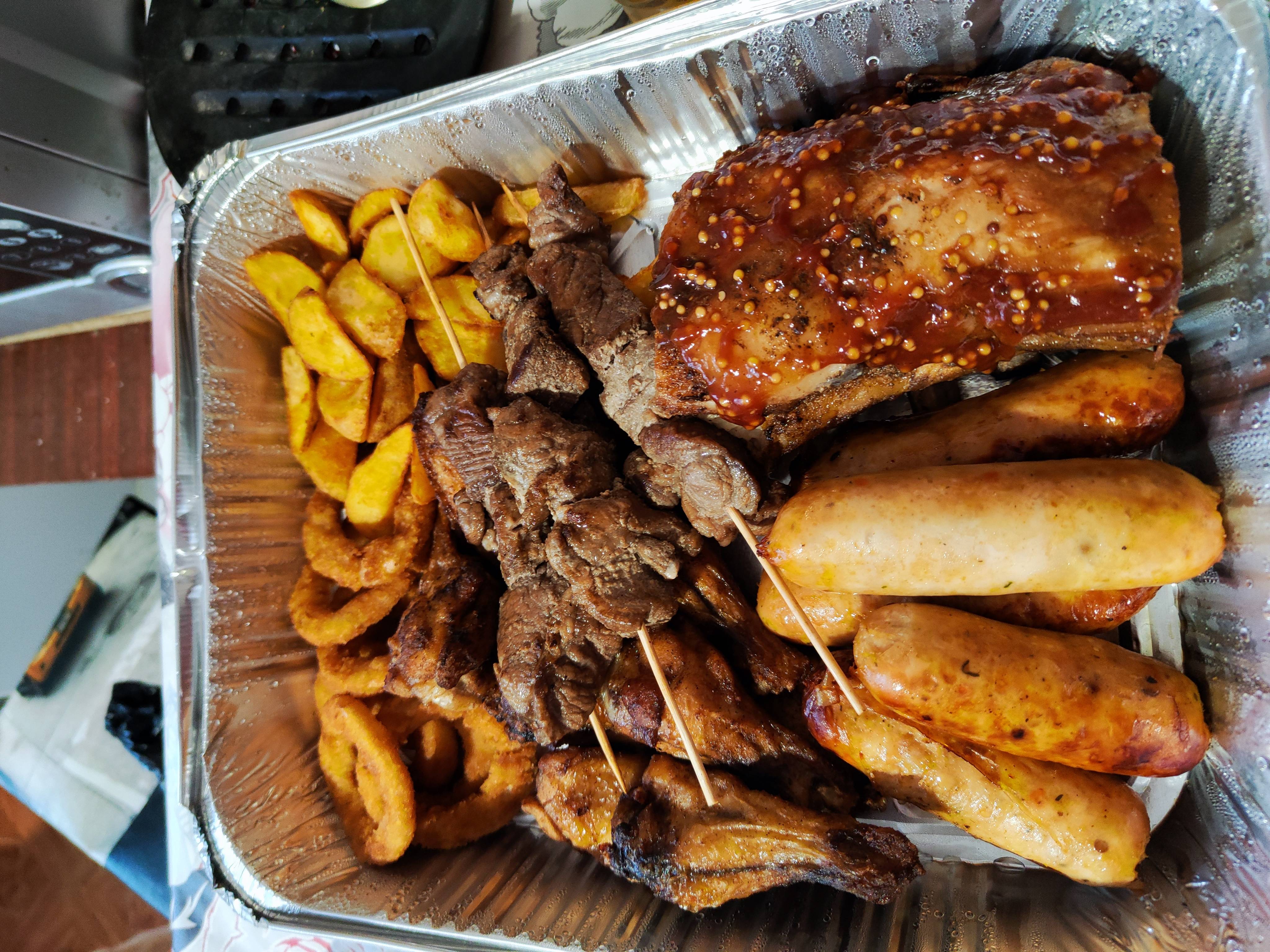- куриные бедра с картофелем по-деревенски (1000 г бедер + 350 г картофеля): 50 р.