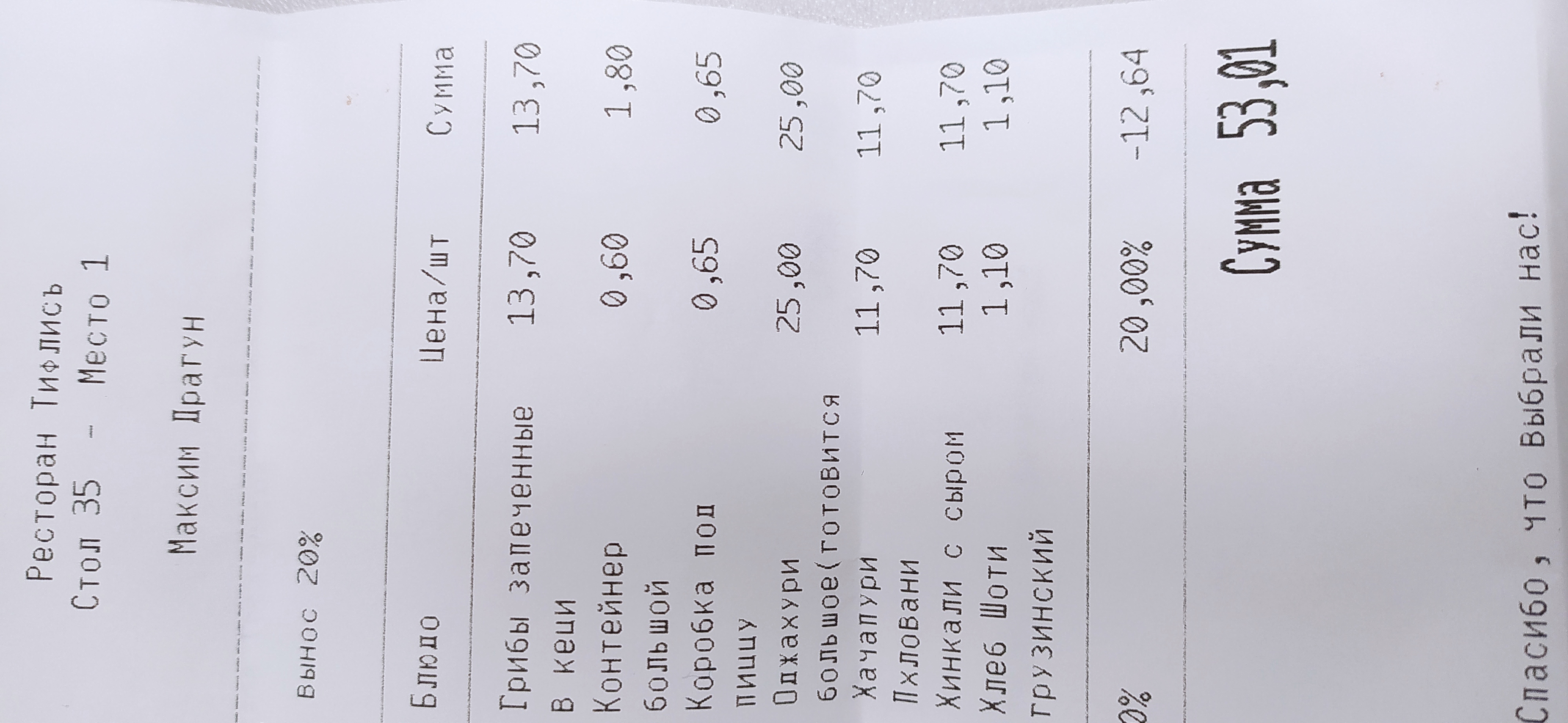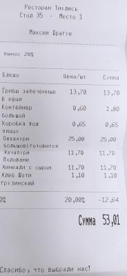 - Промокод дает право на скидку 50% на блюдо "Хинкали по-хевсурски" в ресторане "Tiflis"