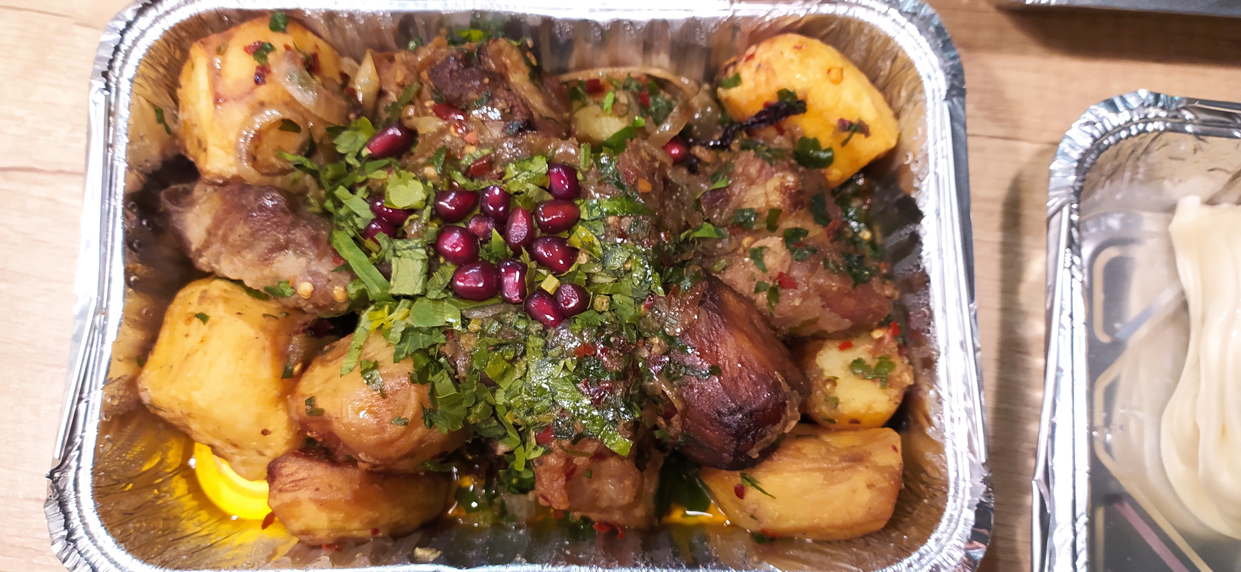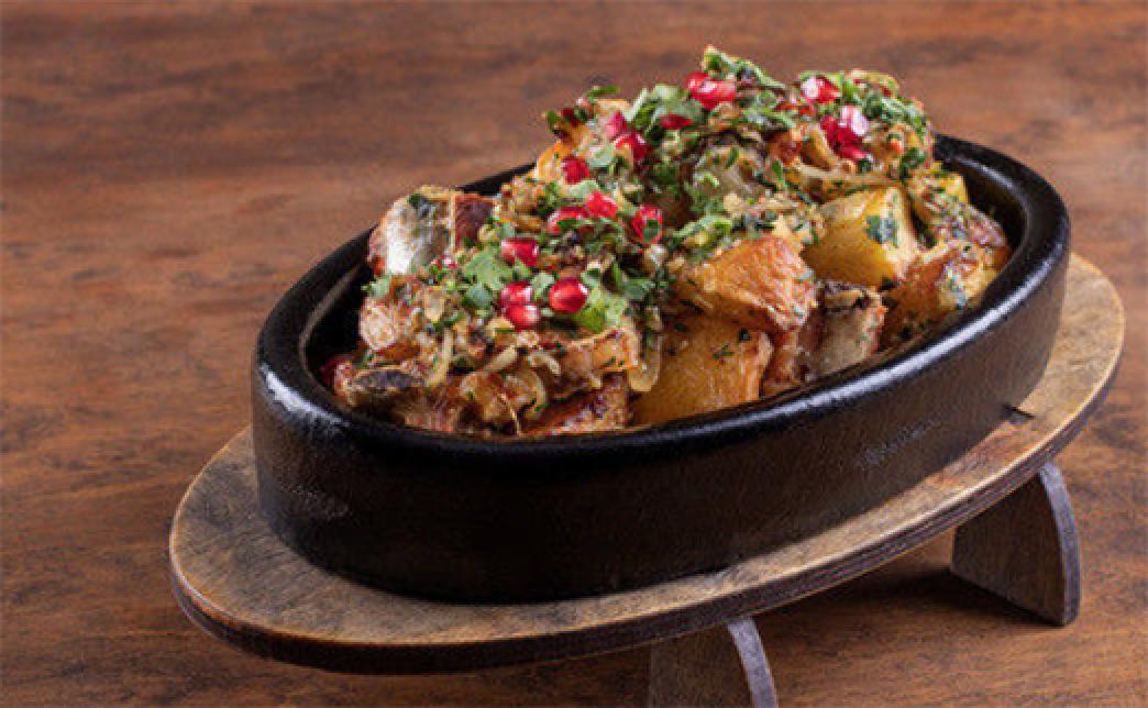 Нежные кусочки ягнёнка на косточке, томленные в белом сухом вине, эстрагоне и кислой сливе ткемали, что придает этому знаменитому грузинскому блюду неповторимый вкусовой букет