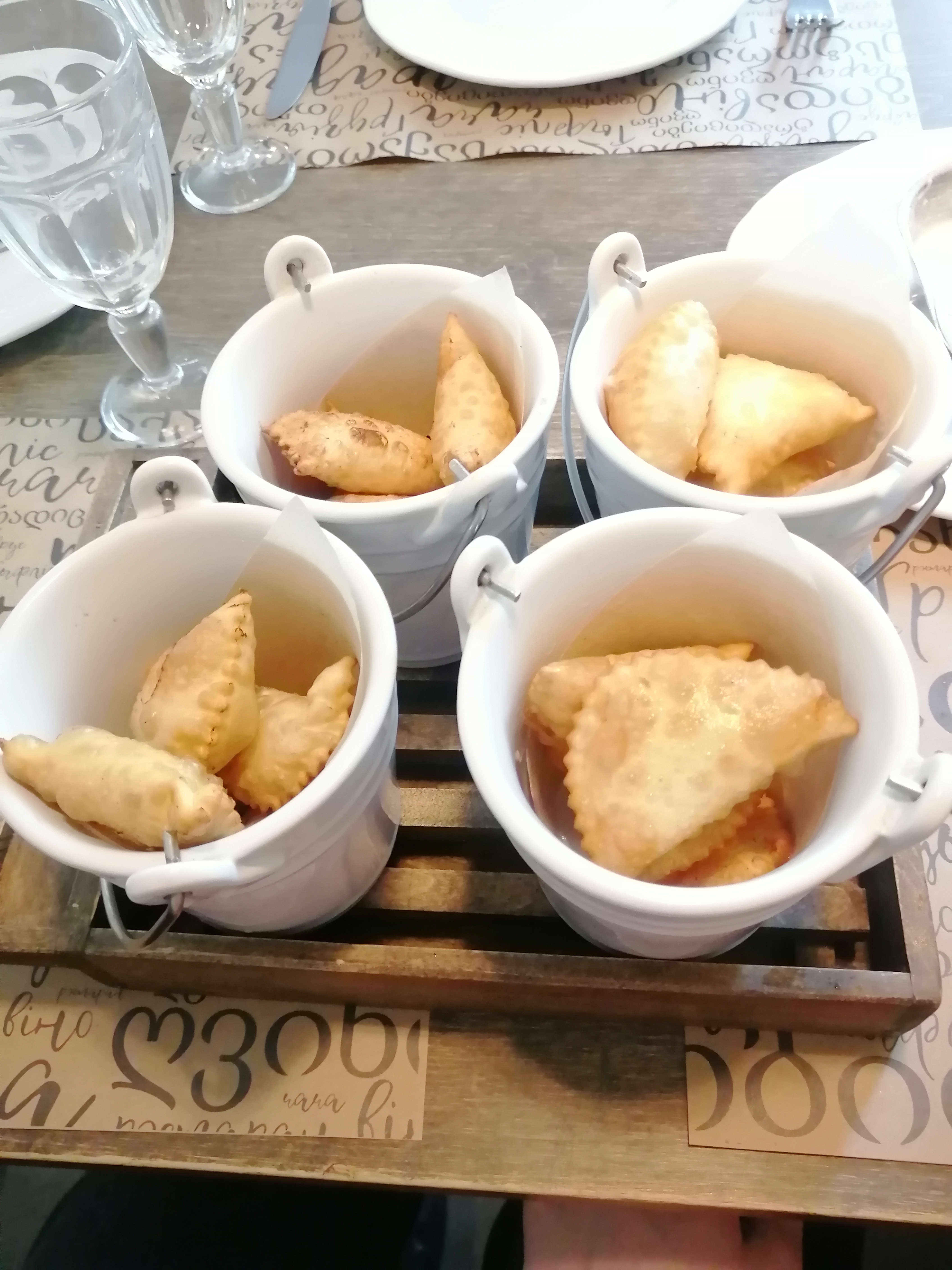Хинкали с начинкой из имеретинскоко сыра, подаются с соусом мацони |