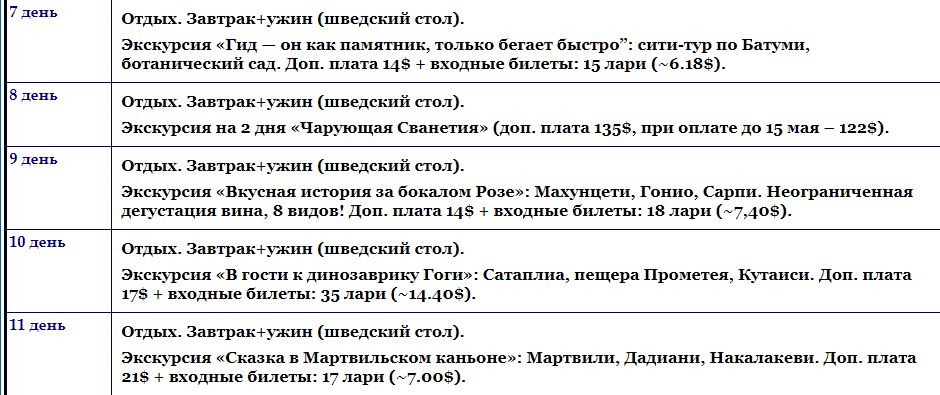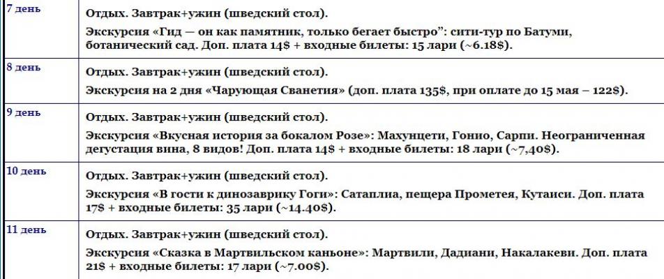 19:00-20:00 — Прибытие в Кобулети. Заселение. Ужин. Ночлег.