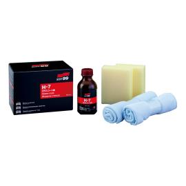 Покрытие на основе жидкого стекла H-7 - это покрытие на основе жидкого стекла для кузова автомобиля. Входящий в состав оксид кремния, полимеризуясь, создаёт на поверхности ЛКП твёрдую защитную оболочку. H-7 - однокомпонентный состав, который не требует смешивания и не имеет ограничений по времени нанесения на кузов автомобиля.