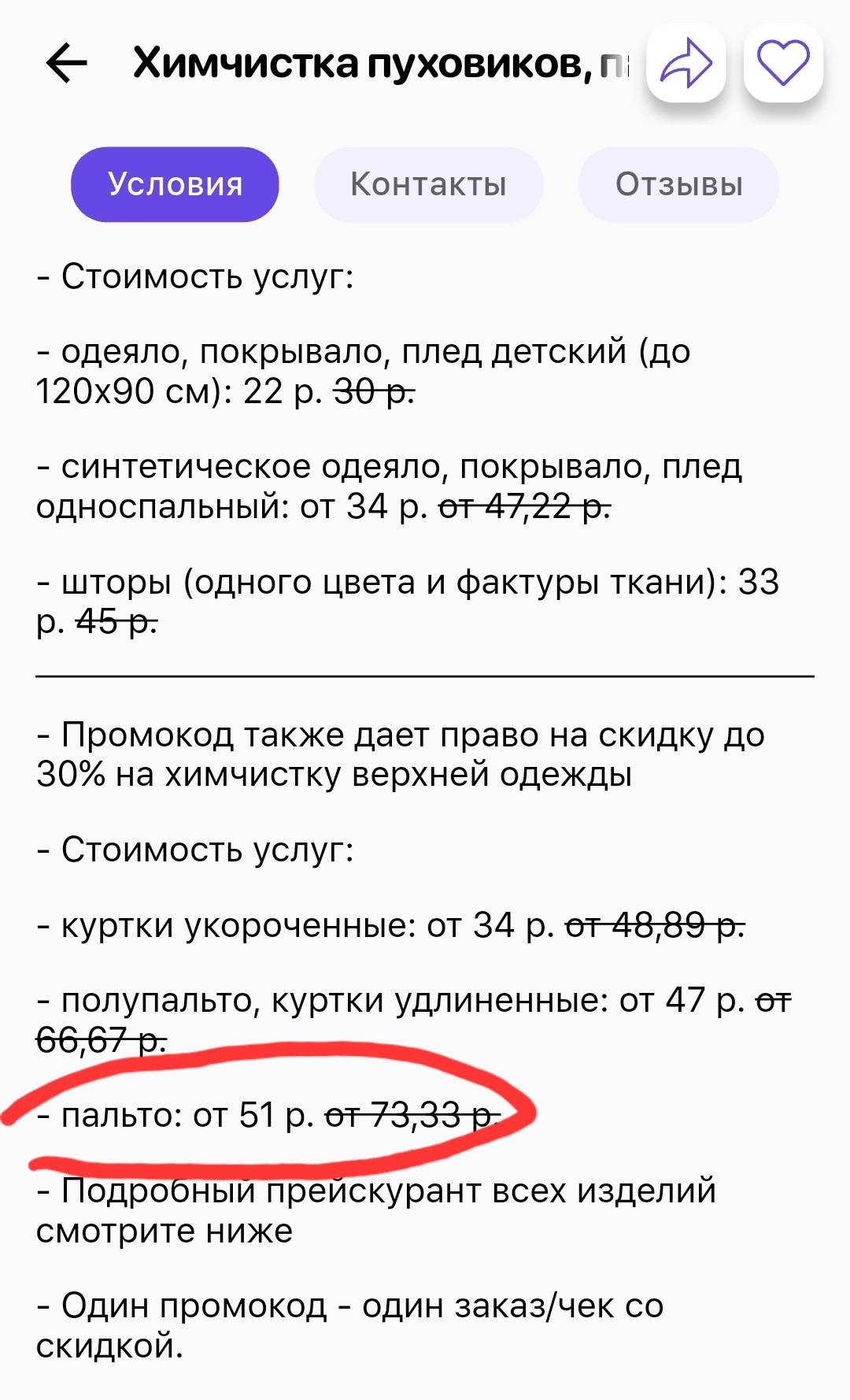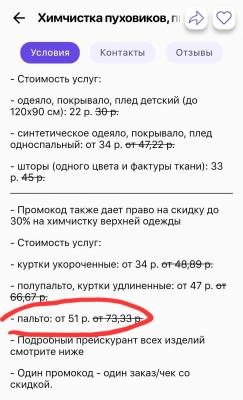 - Промокод также дает право на скидку до 30% на химчистку верхней одежды