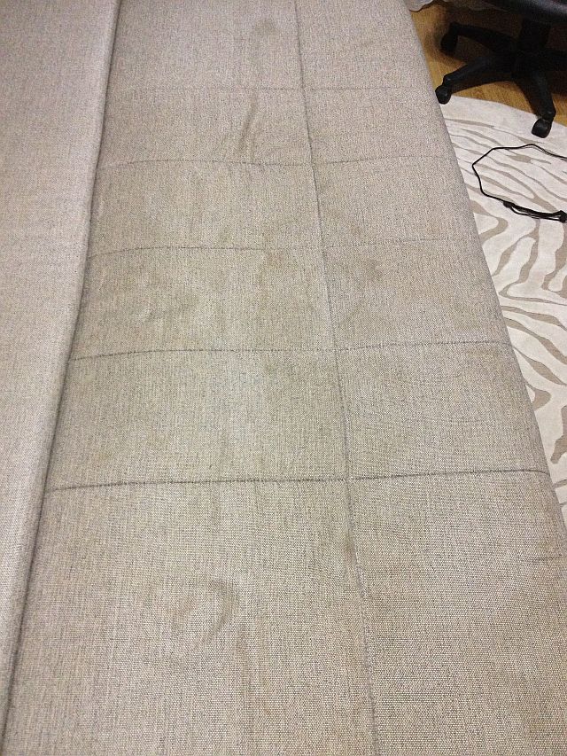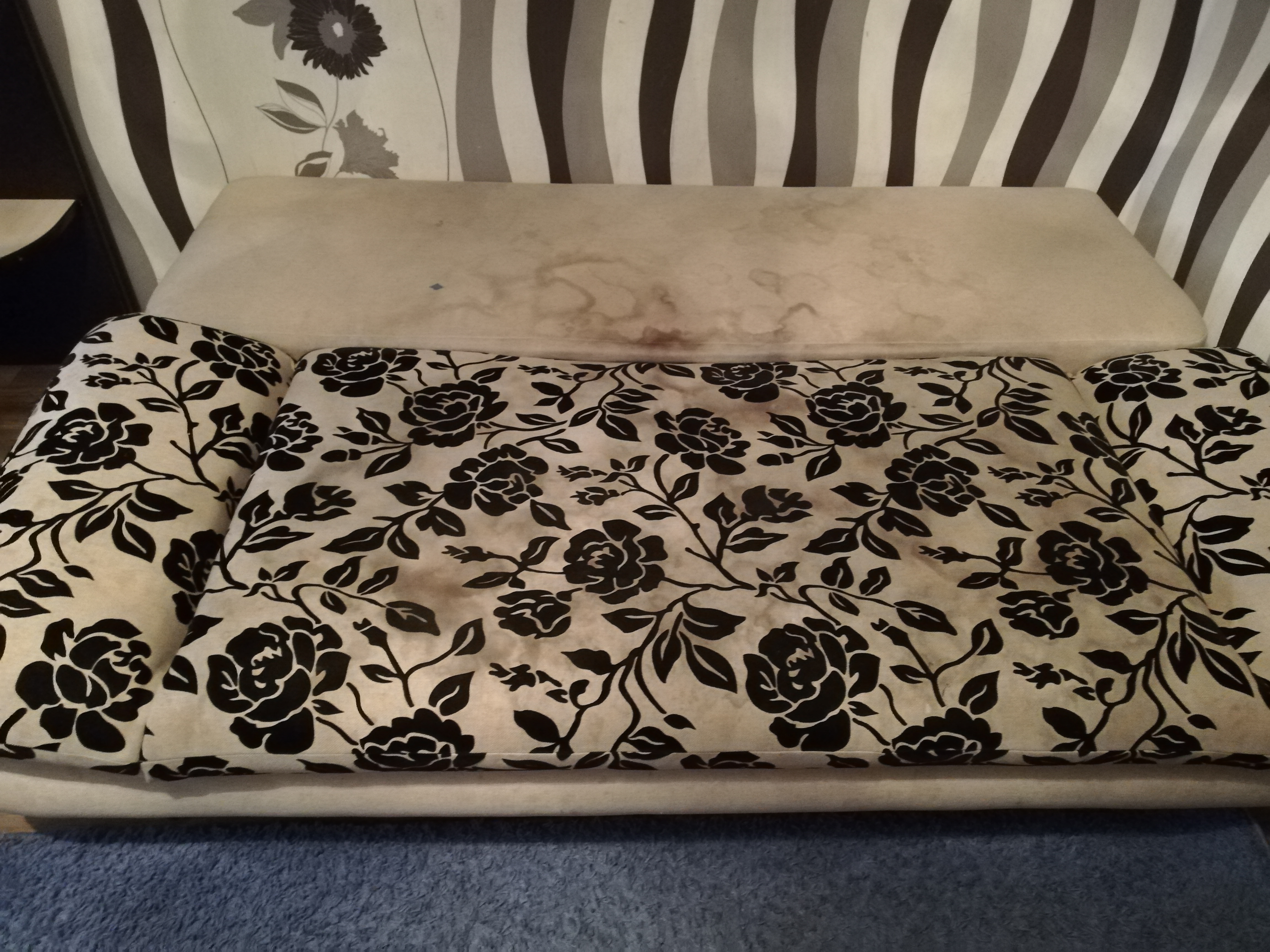 Дети, постоянно что-то проливают на обивку и так на протяжении нескольких лет... (сама пыталась удалить пятна, но всё было безуспешно, отчаялась).