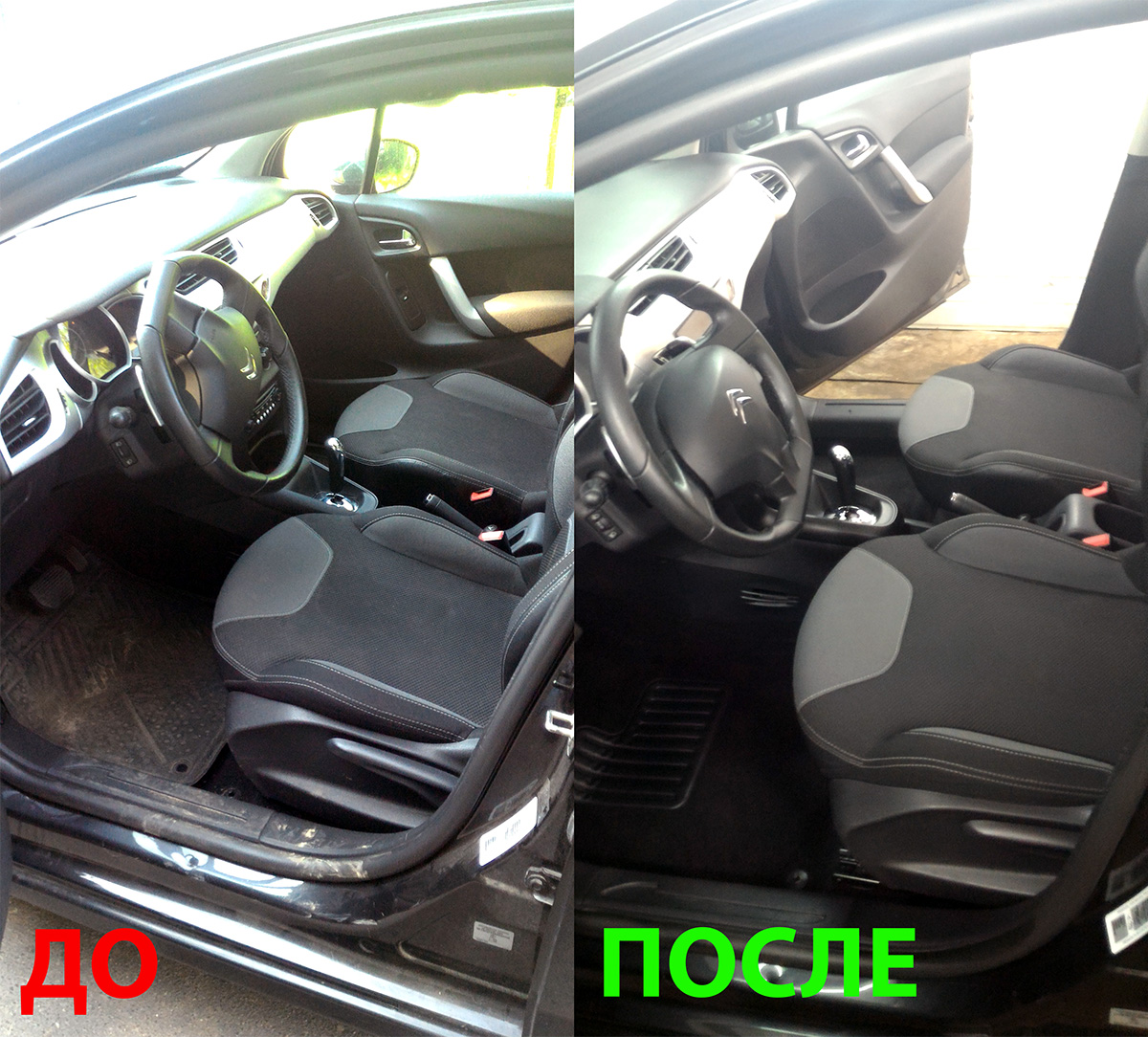 Полный комплекс химчистки салона с применением автохимии и пара включает в себя: