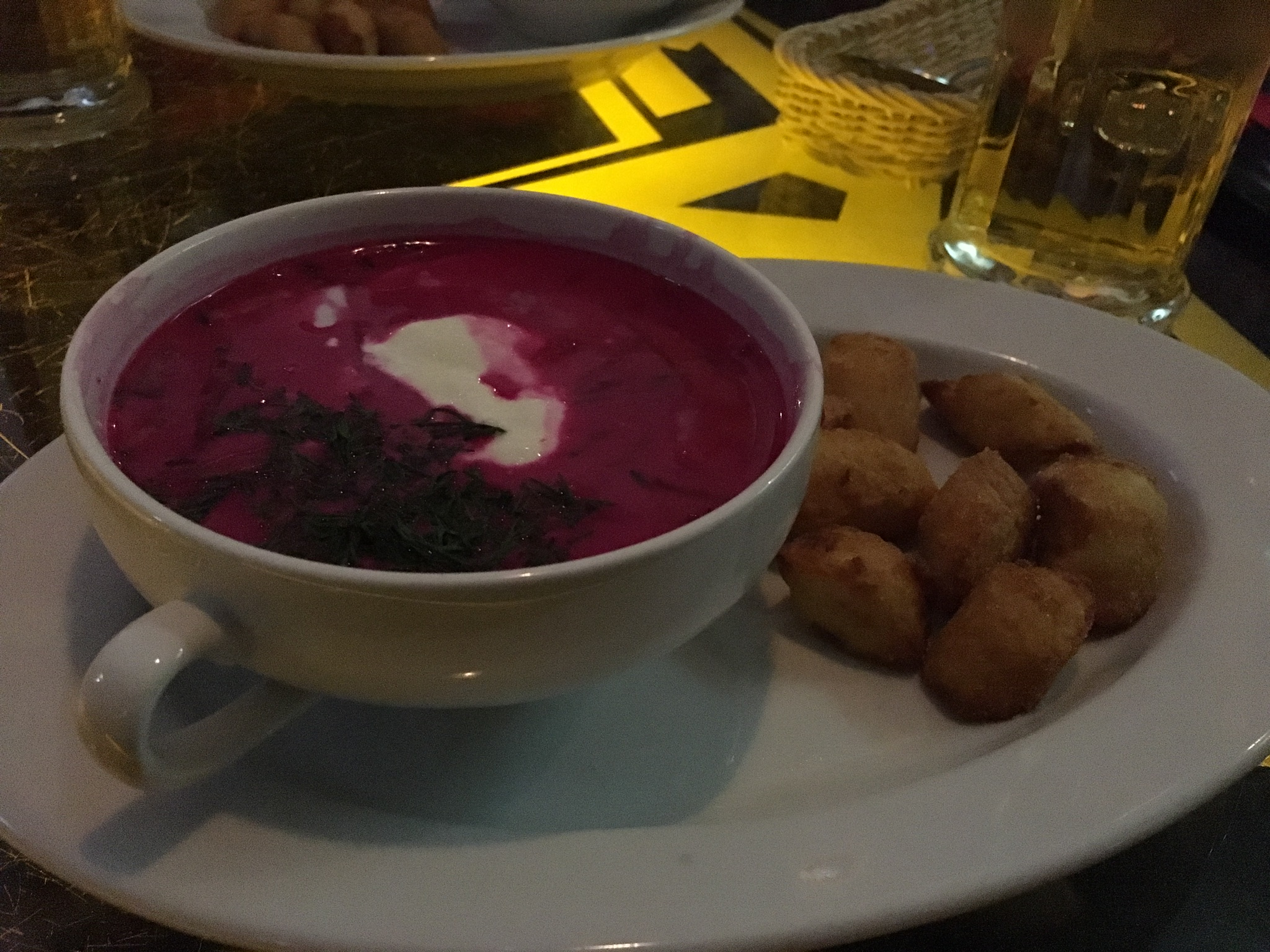 Холодник с ньокками просто супер!) Обслуживание хорошее, были в гараже на Кальварийской. Всем рекомендую попробывать и посетить кафе.