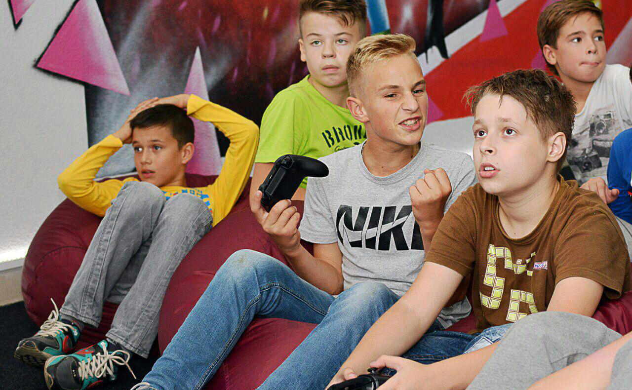 Игровая комната "Джой Джамп" - это отдельный зал с телевизором на 58”, приставкой Xbox One Kinect, световым оборудованием и приватной праздничной атмосферой где можно: