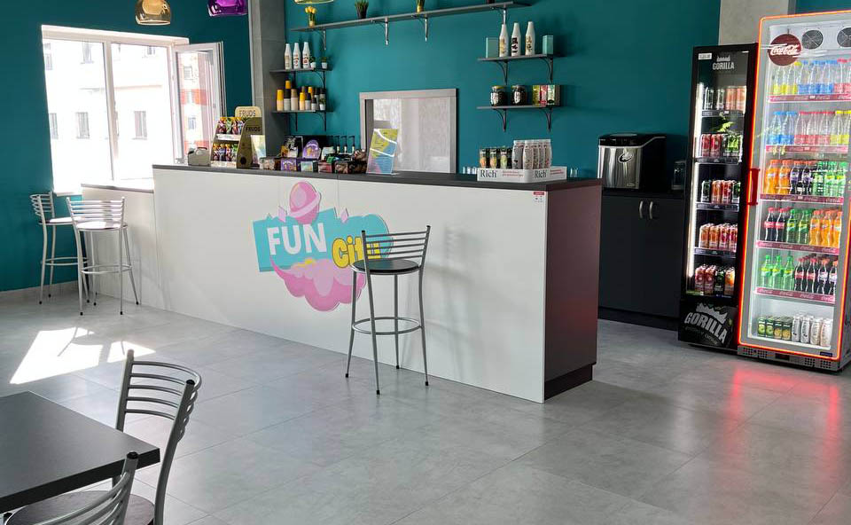На территории клуба есть зона кафе с широким ассортиментом освежающих и горячих напитков и сладостей. Семейно-развлекательный центр "FUNCITY" - мы любим то, что делаем! И делаем то, что любим!