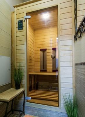 ИК-сауна - это кабина, выполненная из высококачественного канадского кедра. В инфракрасной сауне используется тепловое излучение, которое глубоко (на несколько сантиметров) проникает в живые ткани. Тепловые волны проходят через воздух, практически не нагревая его, и проникают в тело. Достигается эффективный прогрев всего организма в очень мягких условиях температура в сауне не превышает 65 градусов. А положительный эффект превосходит все известные на сегодня иные способы теплового воздействия.
