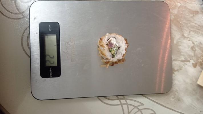 Состав: краб микс, сыр чеддер, огурец, чипс бекона, сливочный сыр, соус терияки, кляр, сухари панко