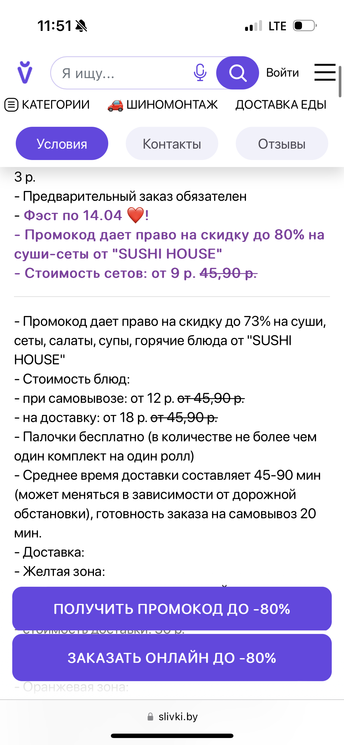 - Промокод дает право на скидку до 71% на сеты от "SUSHI HOUSE"