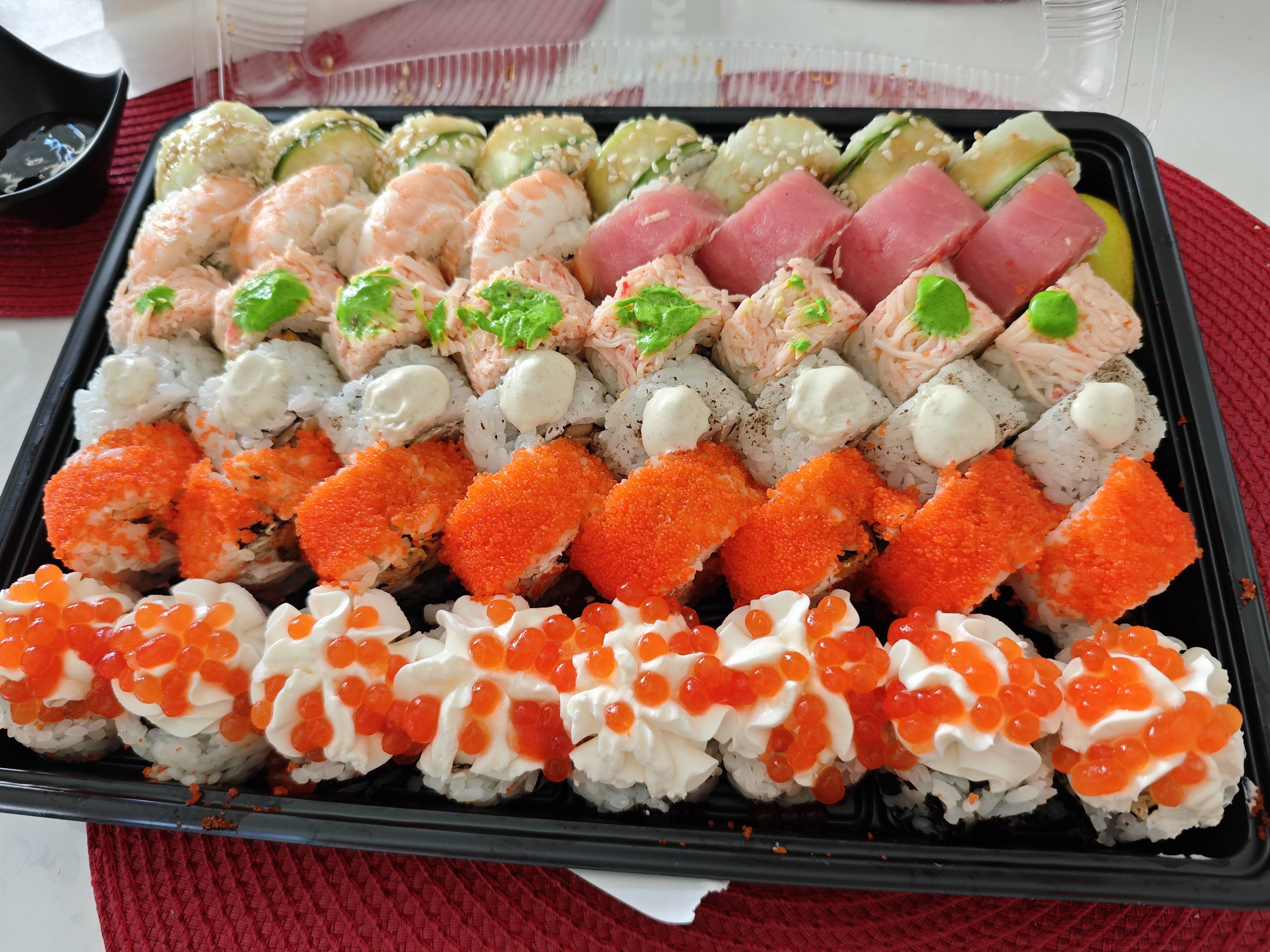 В первый раз суши были ооооочень маленькие, во второй раз получше, вроде все свежее