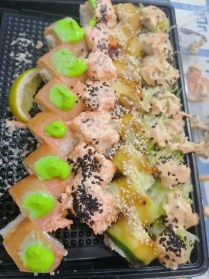 Брали самовывозом сет Цунами. Сам сет выглядел симпатично, аккуратно, но на вкус как-то пресно. Во всех роллах не хватает вкуса. Рис сварен как будто без уксуса,сахара и тп. Плюс чувствуется, что не только что сет приготовлен, забирать сказали можно через 15 мин после звонка. Наверное, половина(если не весь сет) уже лежала готовая и ждала.