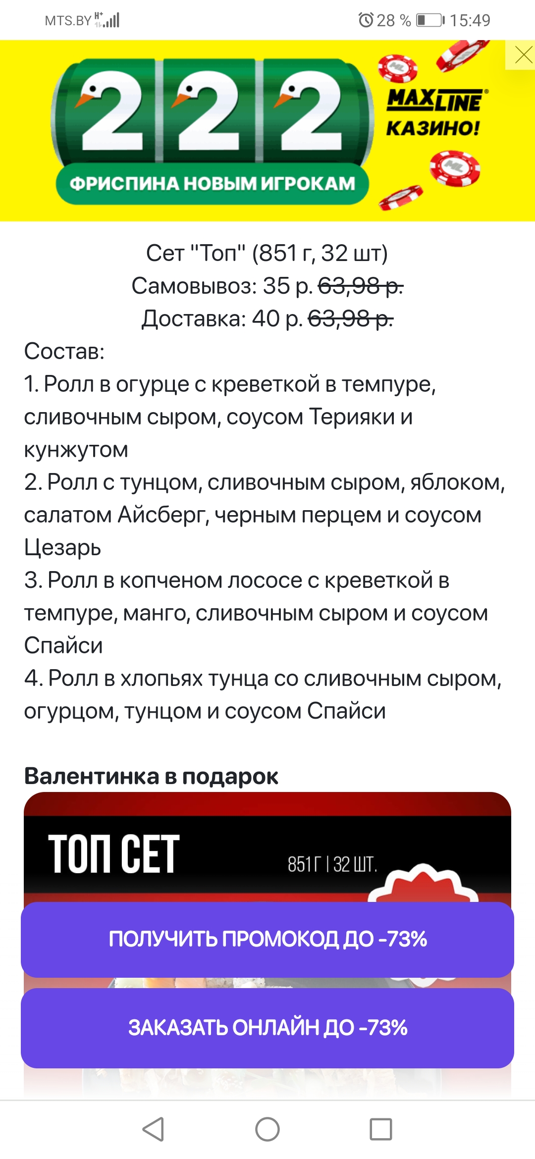 - Промокод дает право на скидку до 59% на сет "Анатолий доплатит" от "SUSHI HOUSE"