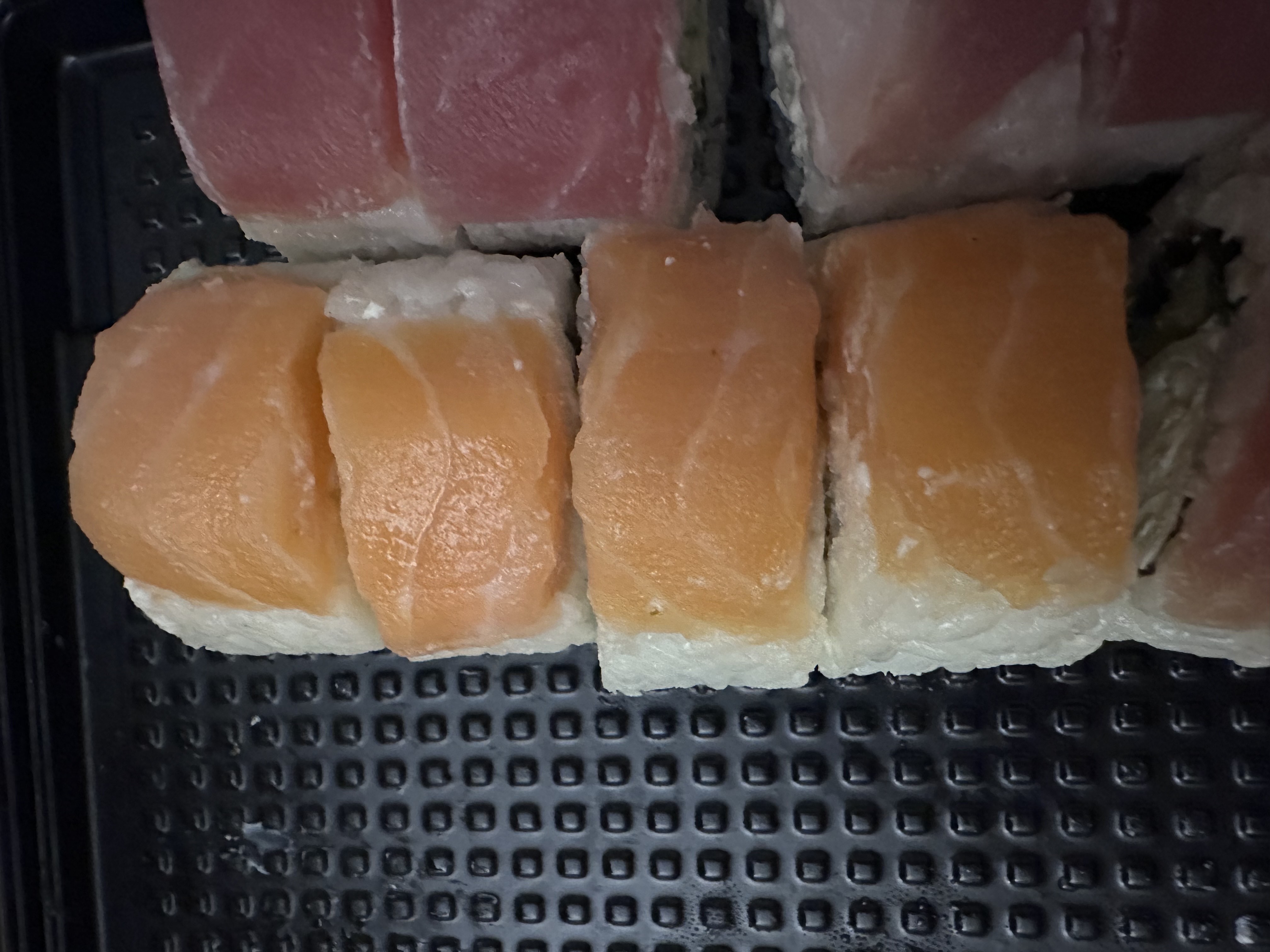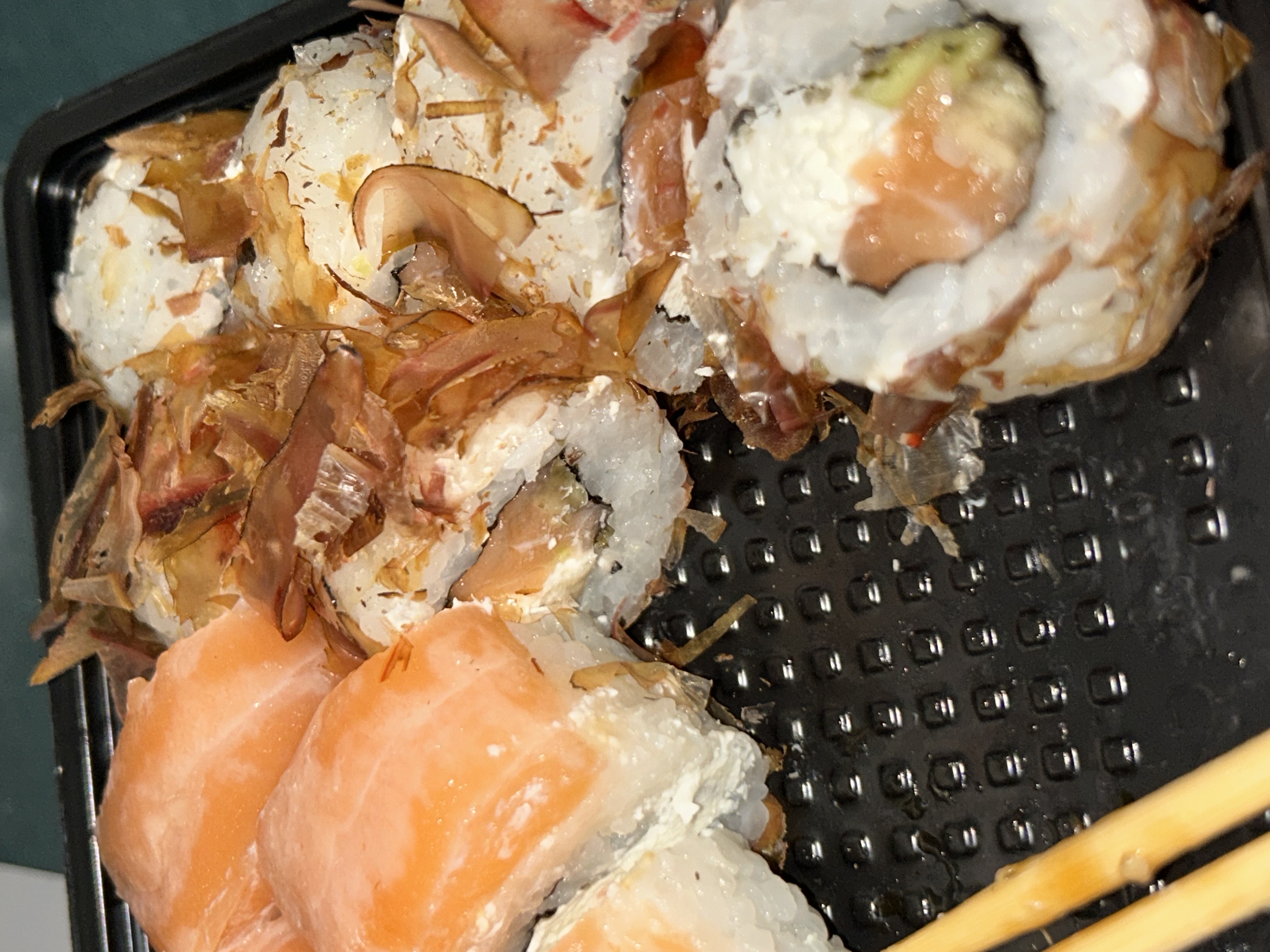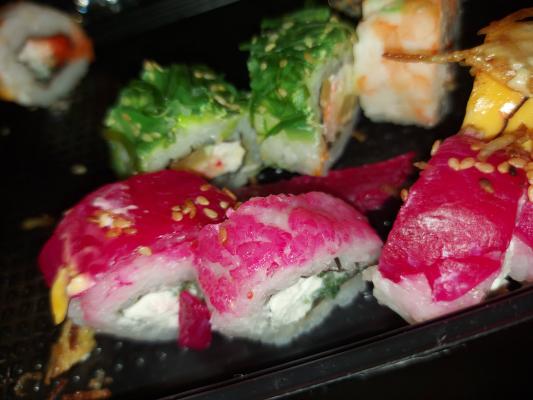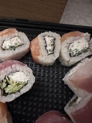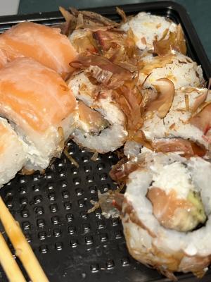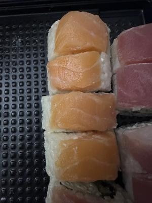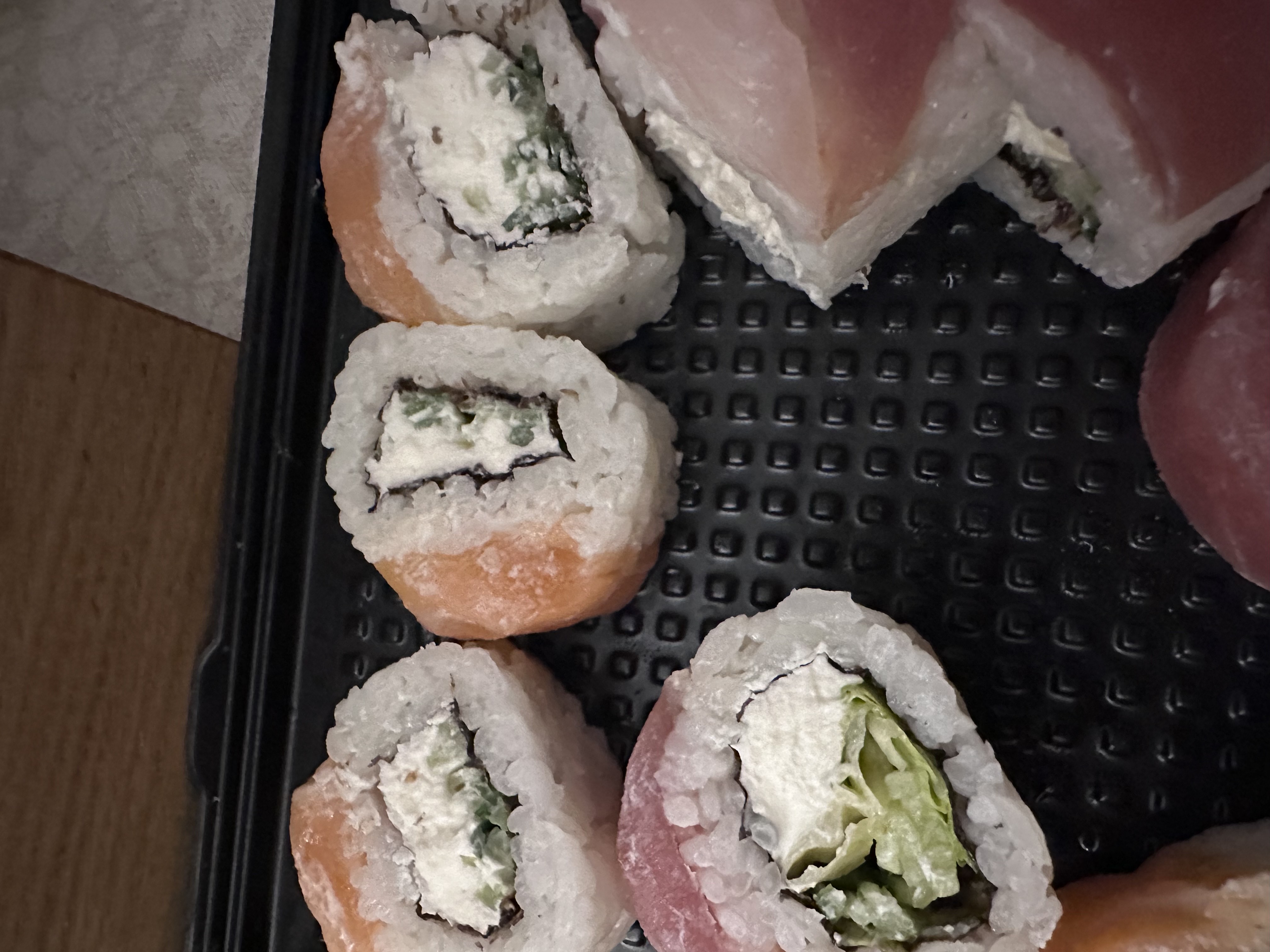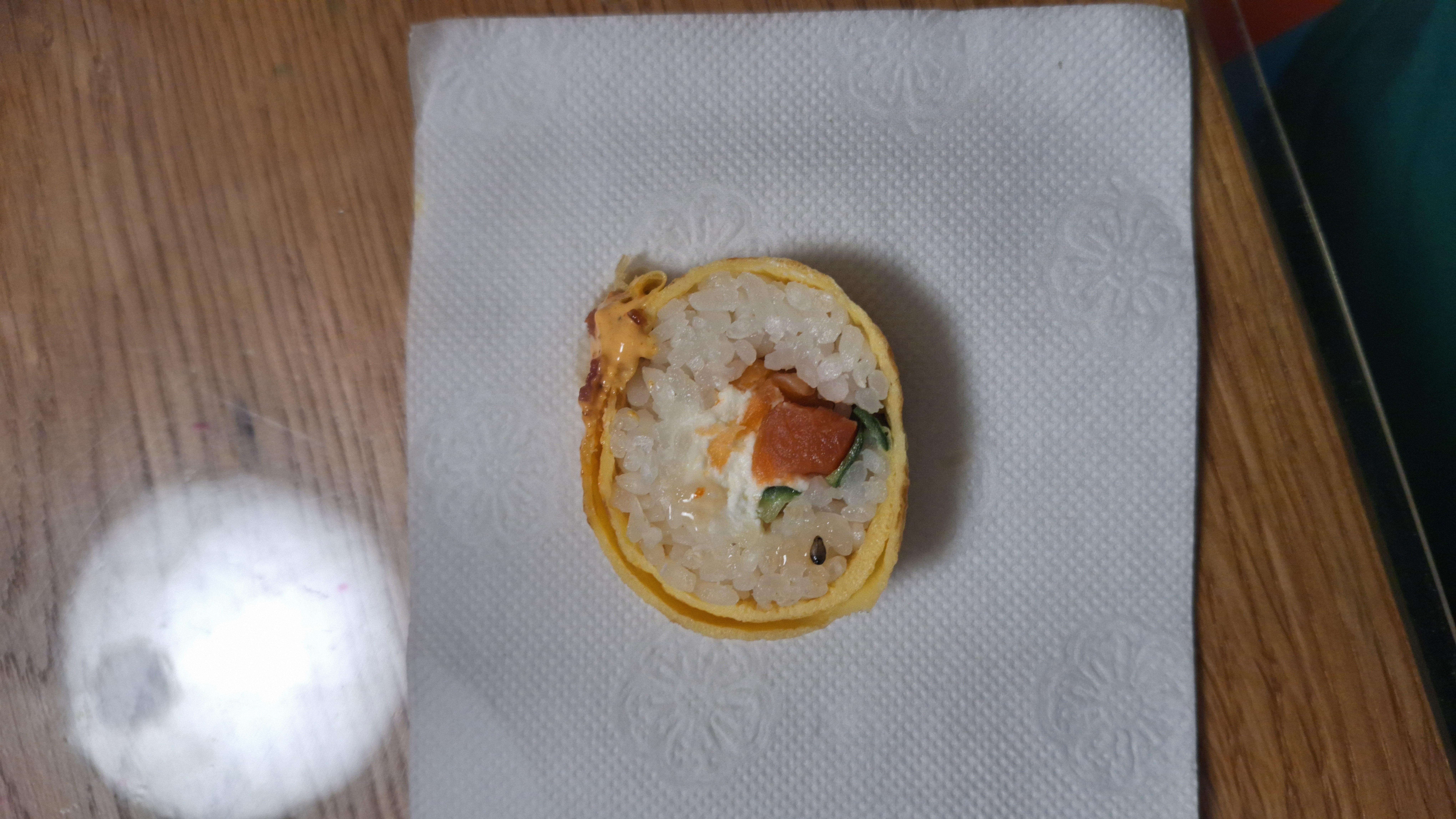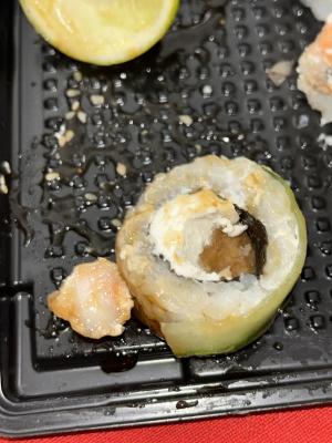 Состав: лосось, огурец, сливочный сыр, соус спайси, кунжут кимчи, соус терияки, кляр, сухари панко
