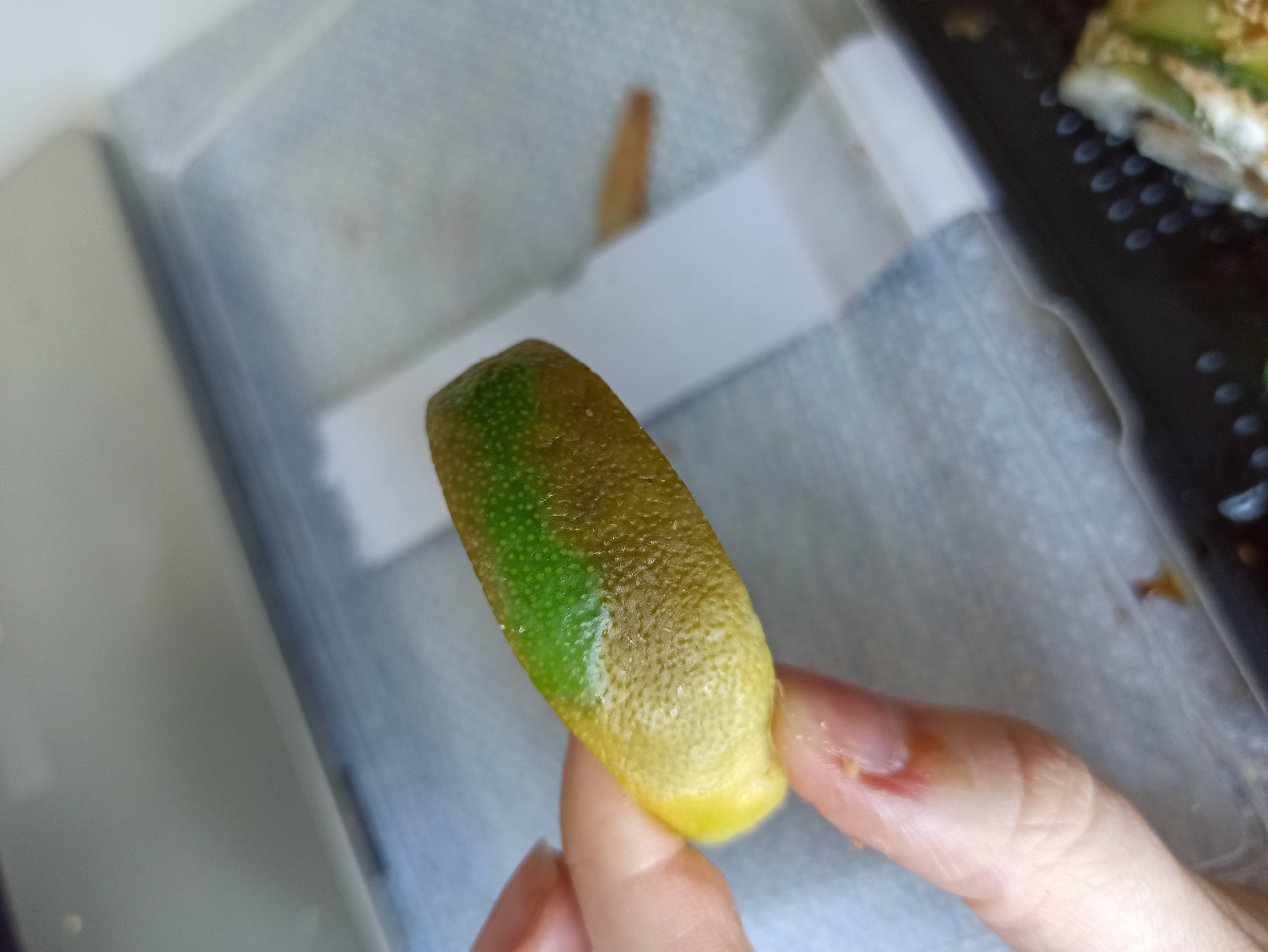 Сет Хатико. Роллы с креветкой. Где креветка то? В основном внутри один батон(кляр). Суши с каждым разом все меньше по размеру, на составе экономят. Раньше было получше.Кстати, вот такой лайм нам положили. Суши, видно, полежавшие. Забирали с ТЦ Титан.