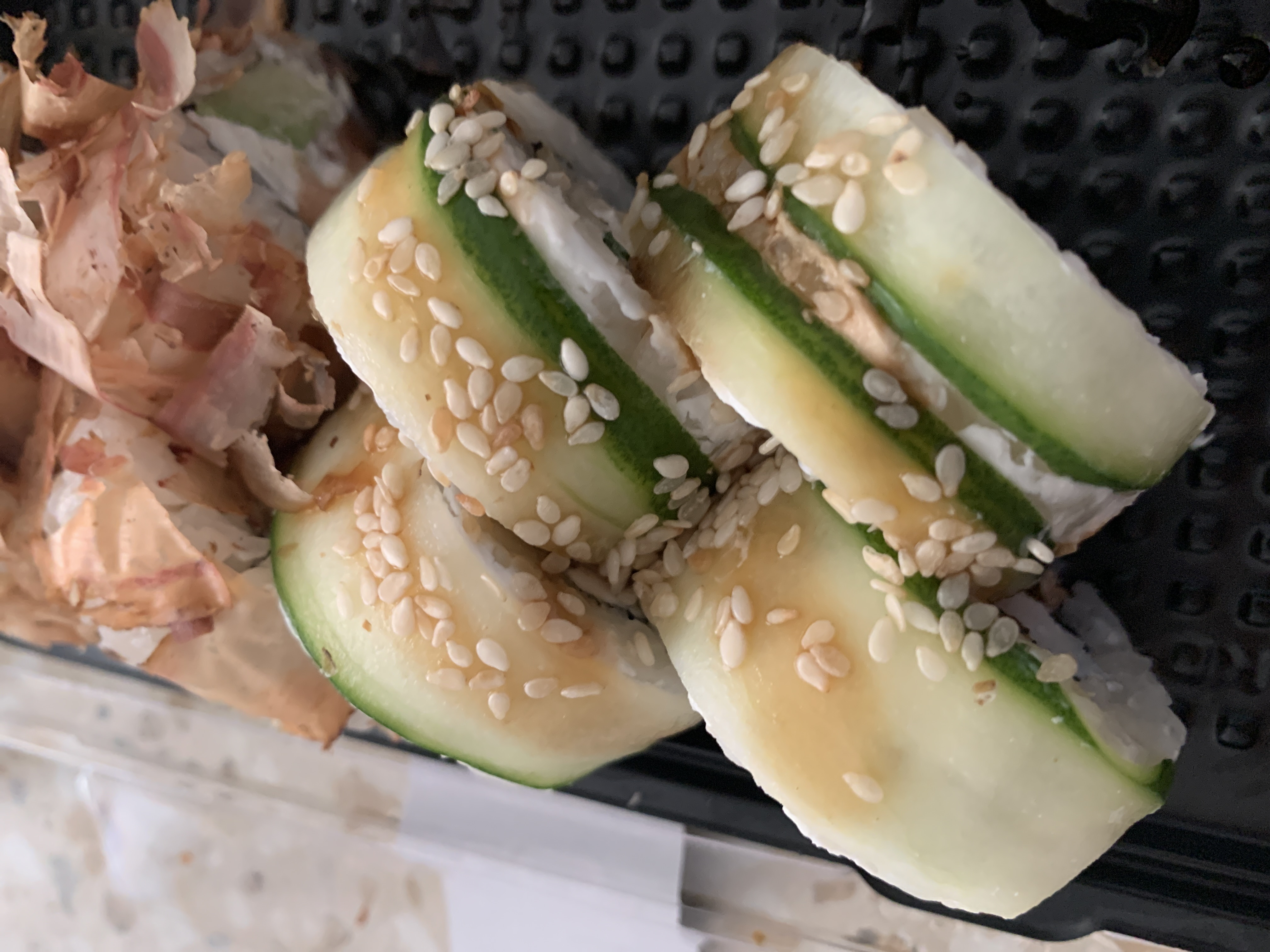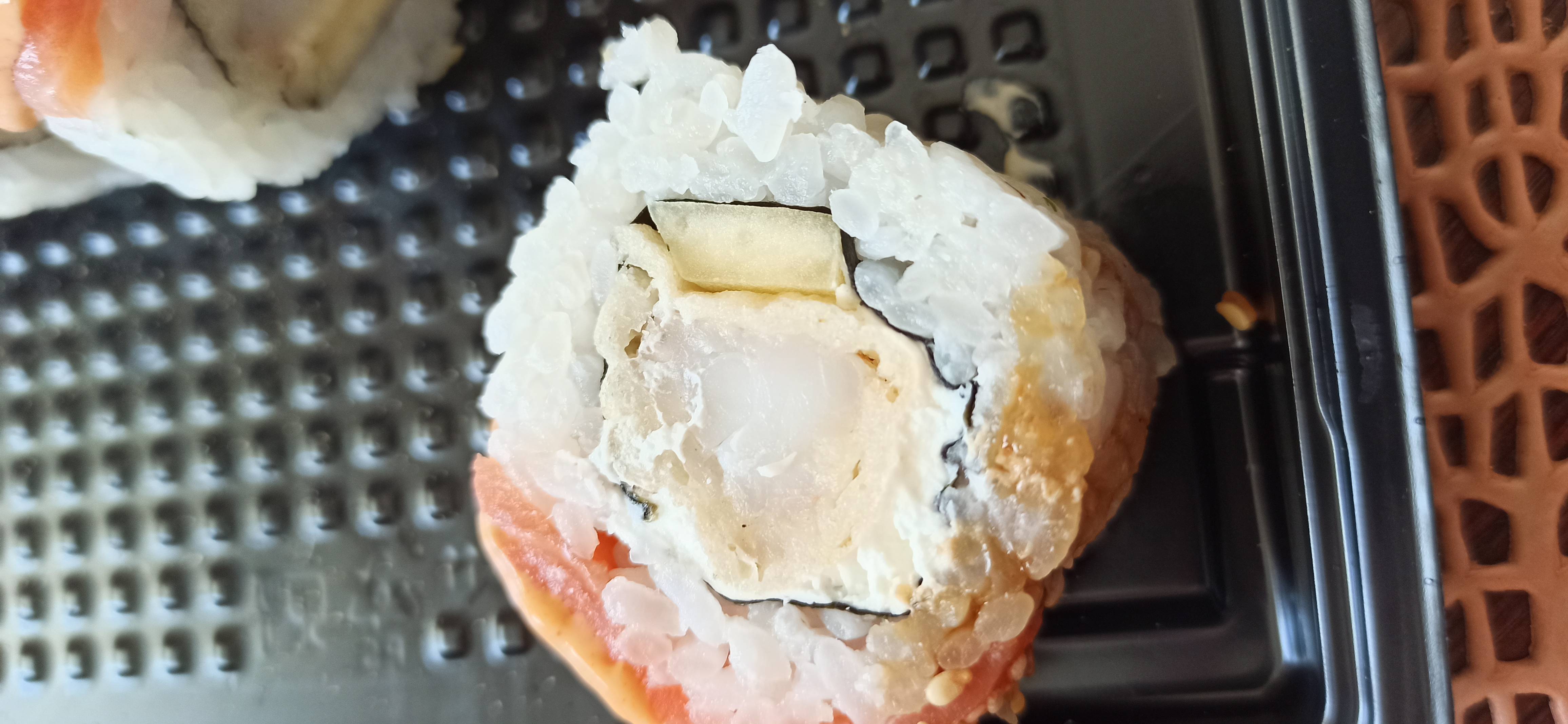 Состав: лосось, огурец, сливочный сыр, соус спайси, кунжут кимчи, соус терияки, кляр, сухари панко