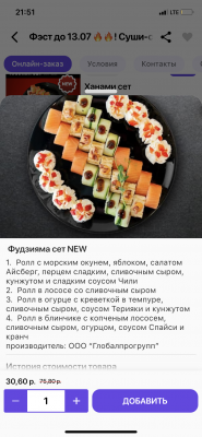 - хот ролл (четверг): 0 р. от 16,99 р.