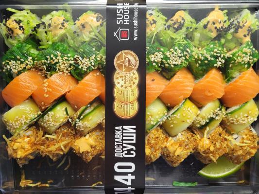 - Промокод дает право на скидку до 53% на суши-сеты от "SUSHI HOUSE"