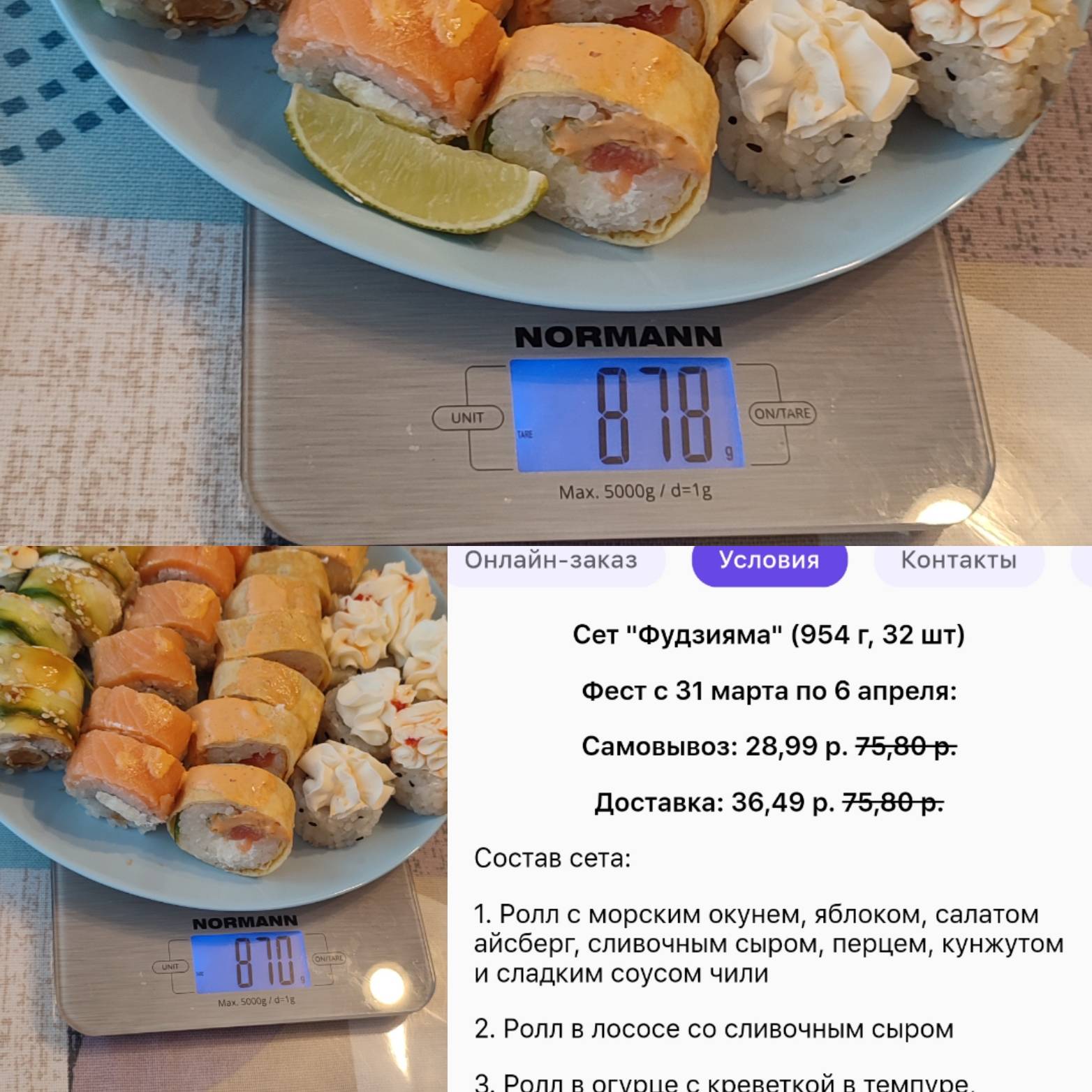 - Стоимость сета (1175 г, 40 шт):