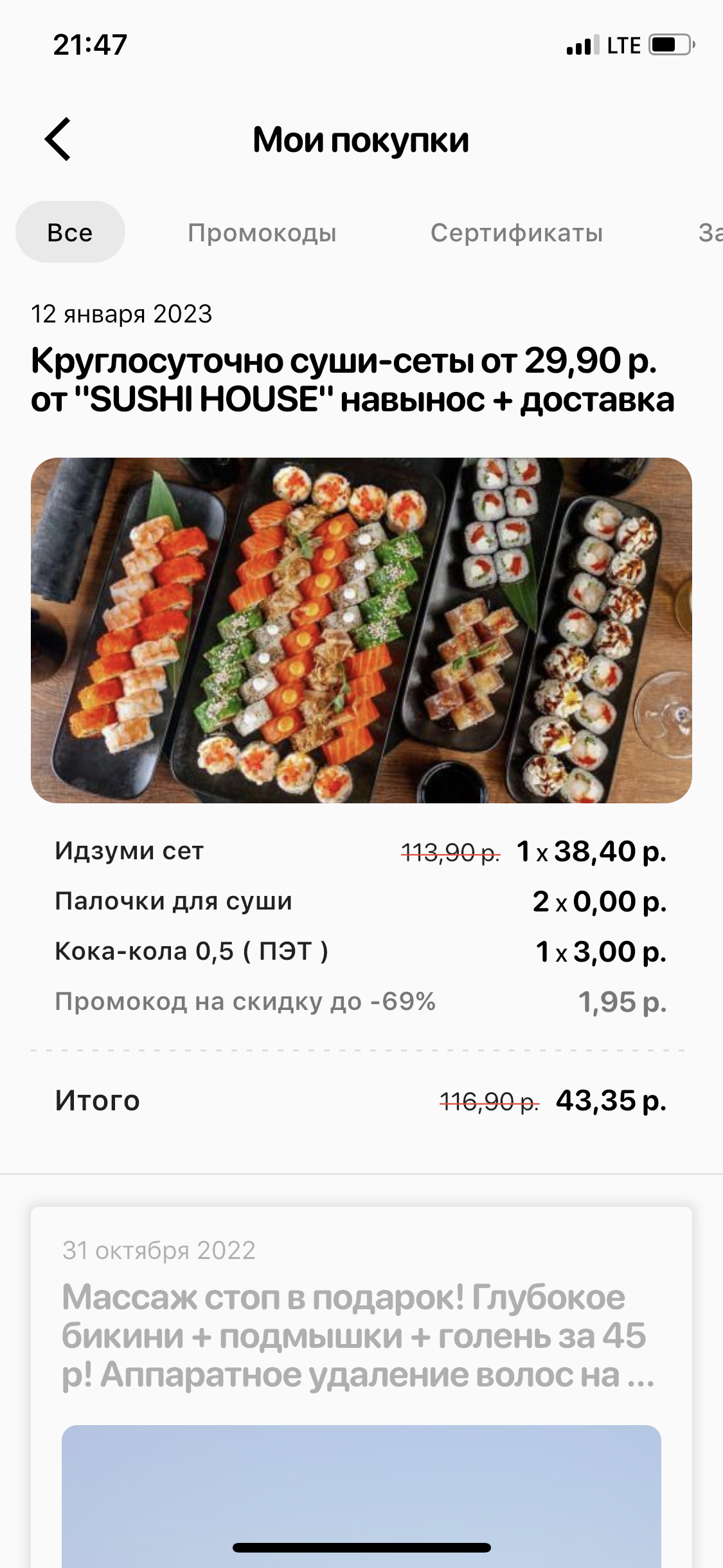 - Промокод дает право на скидку до 59% на сет "Анатолий доплатит" от "SUSHI HOUSE"