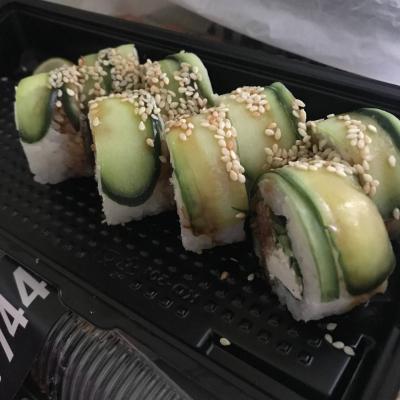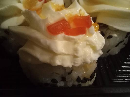 Состав: лосось, огурец, сливочный сыр, соус спайси, кунжут кимчи, соус терияки, кляр, сухари панко