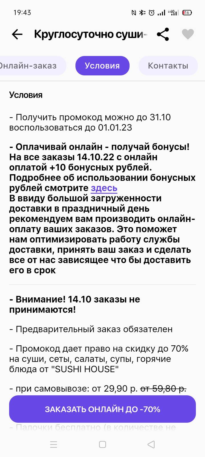 - Промокод дает право на скидку до 59% на суши-сеты от "SUSHI HOUSE"