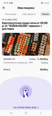 - Промокод дает право на скидку до 53% на суши-сеты от "SUSHI HOUSE"