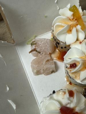 Состав: краб микс, сыр чеддер, огурец, чипс бекона, сливочный сыр, соус терияки, кляр, сухари панко