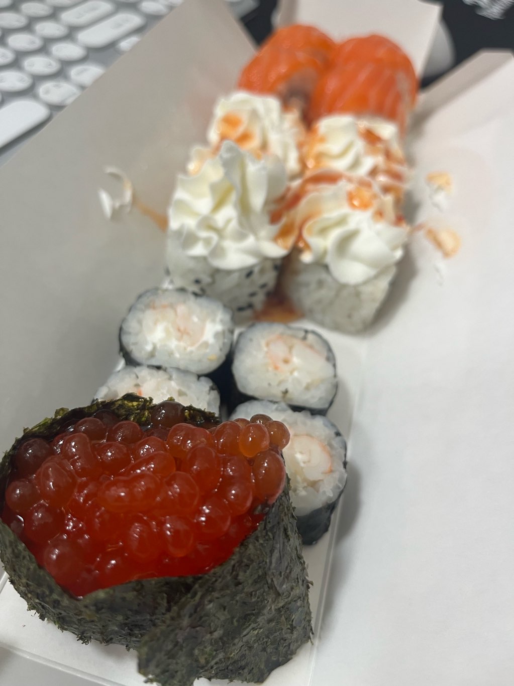 Безумно вкусные роллы,ела бы и ела.Доставили вовремя и курьер вежливый.Спасибо за хорошее обслуживание!