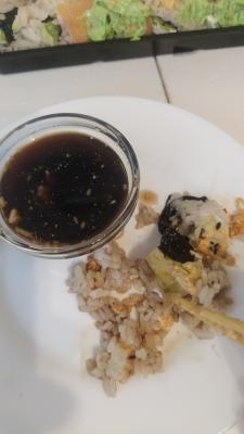 Состав: японский омлет, рис, нори, соус Унаги, кунжут белый