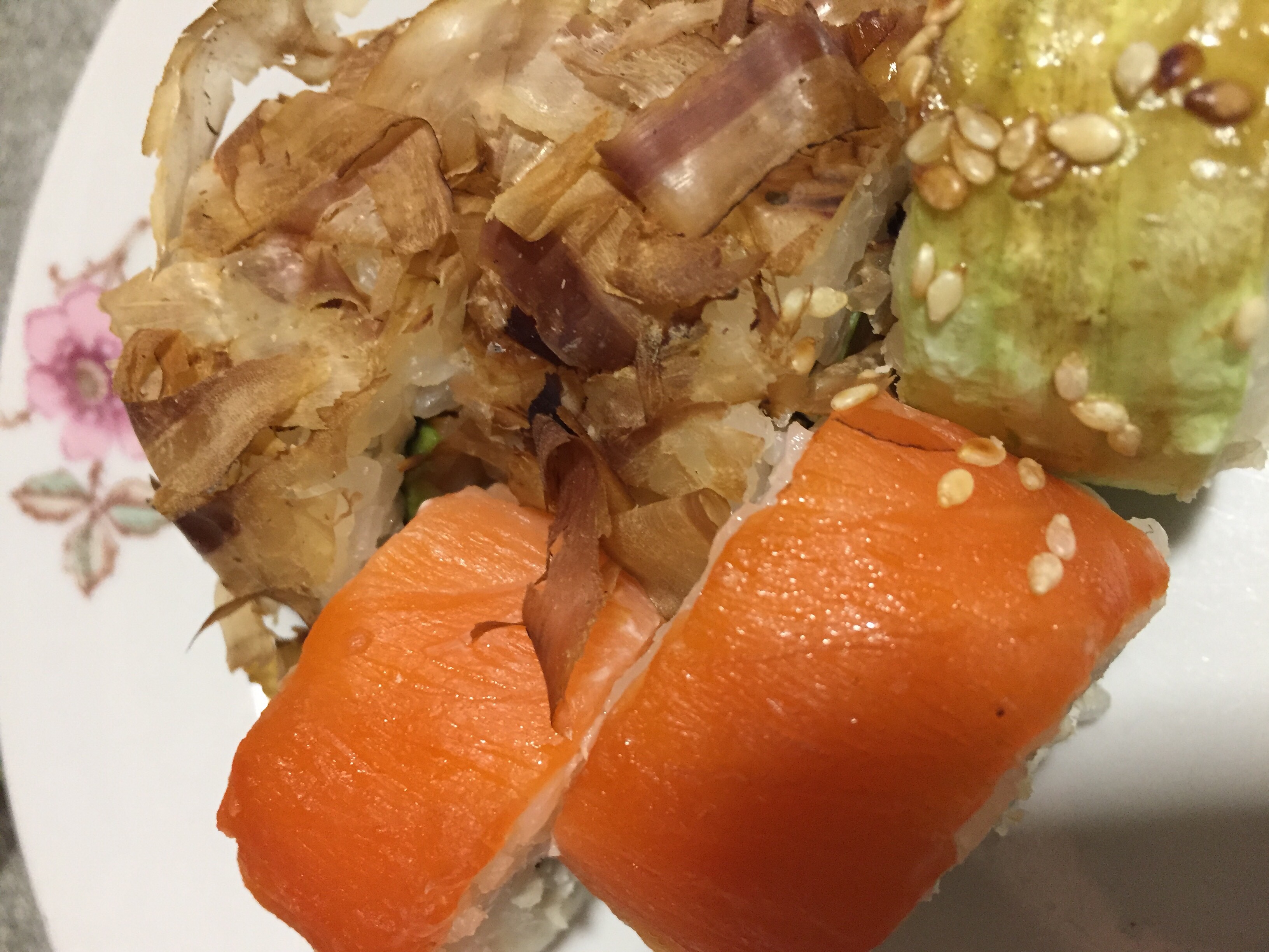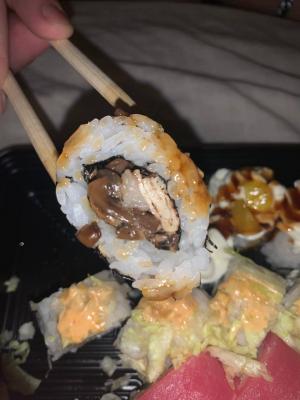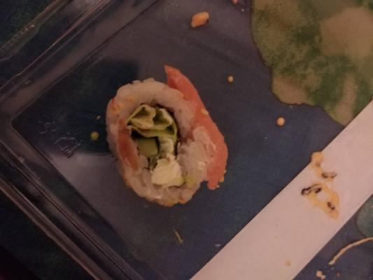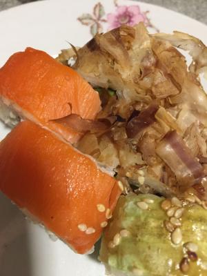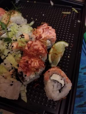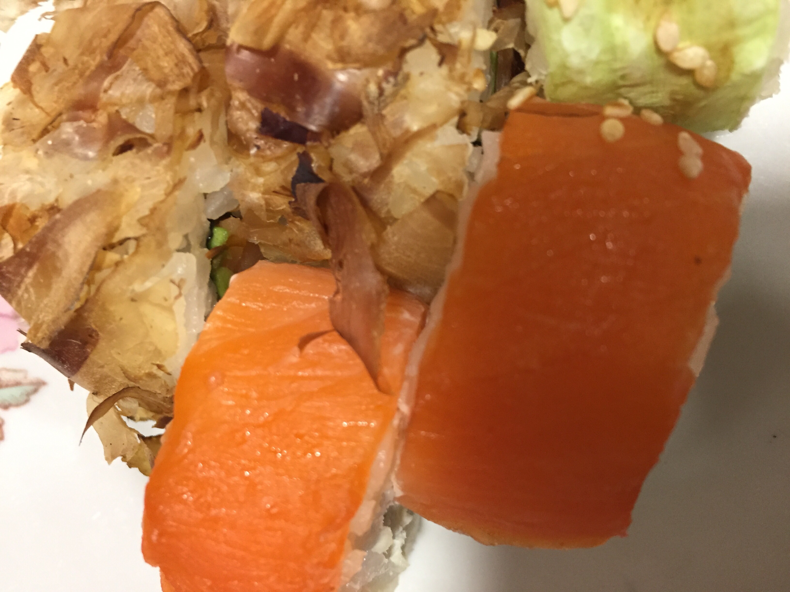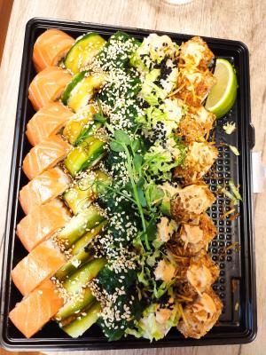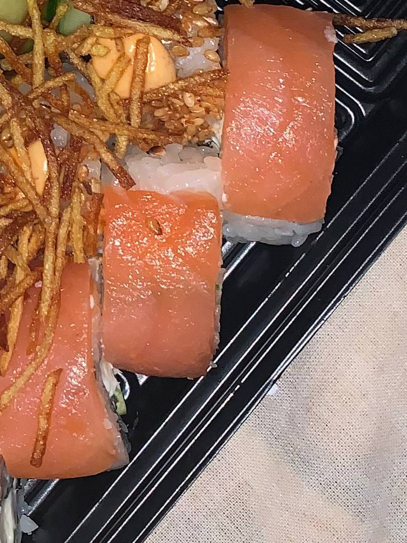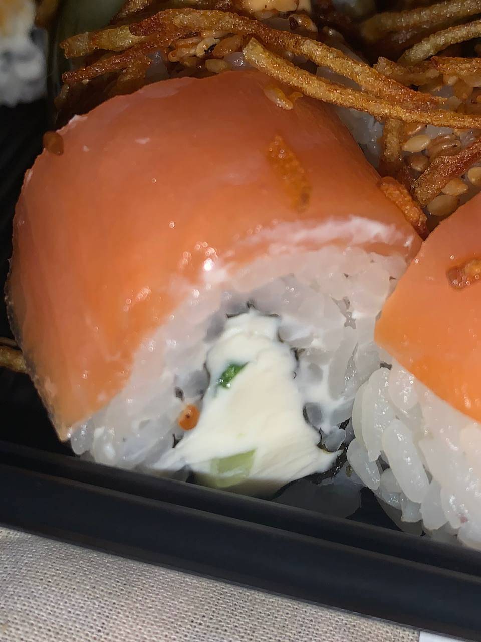 Состав: лосось, огурец, сливочный сыр, соус спайси, кунжут кимчи, соус терияки, кляр, сухари панко