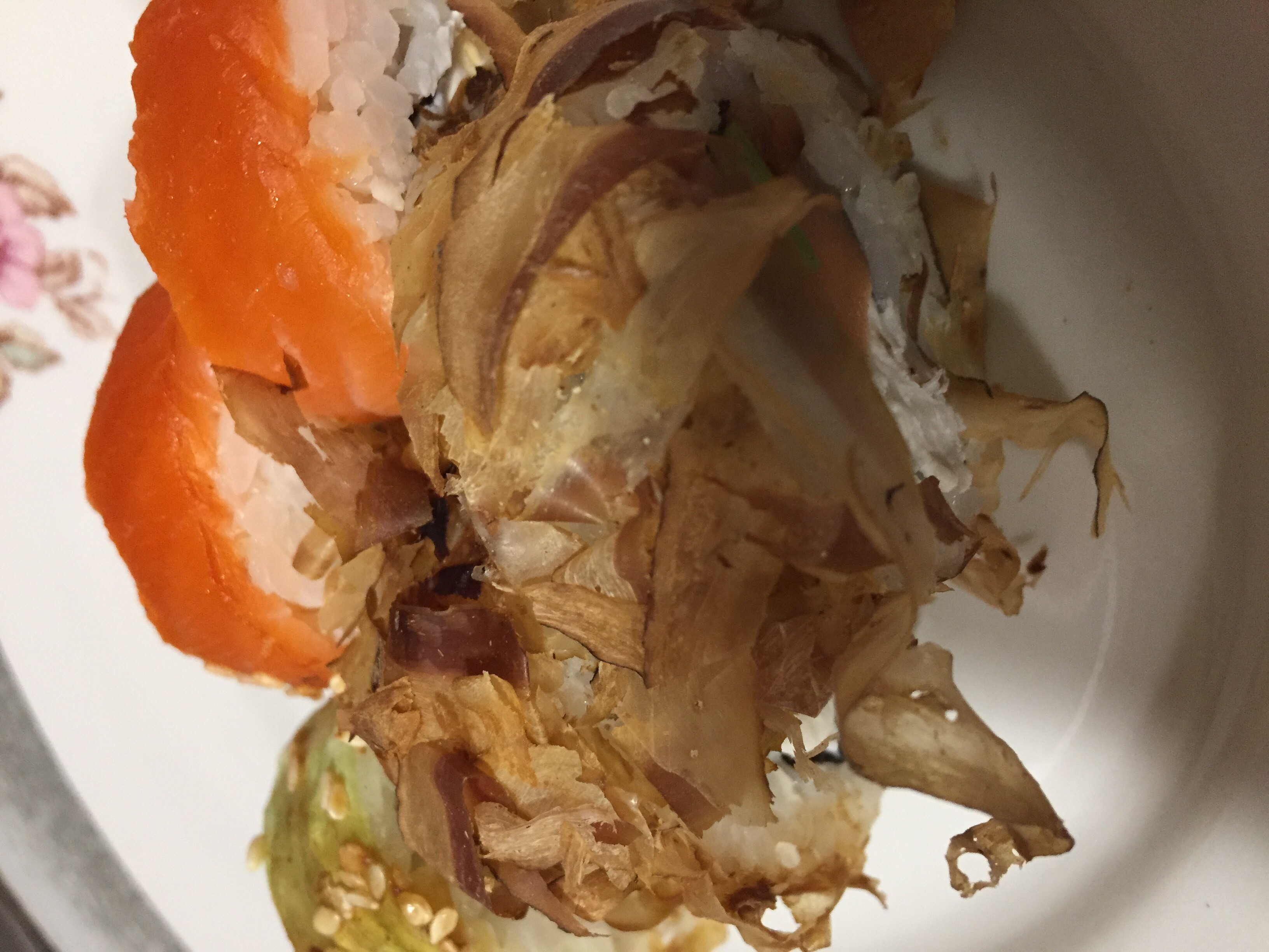 Состав: сунец, авокадо, сливочный сыр, кунжутное масло, картофель пай, соус терияки, кляр, сухари панко