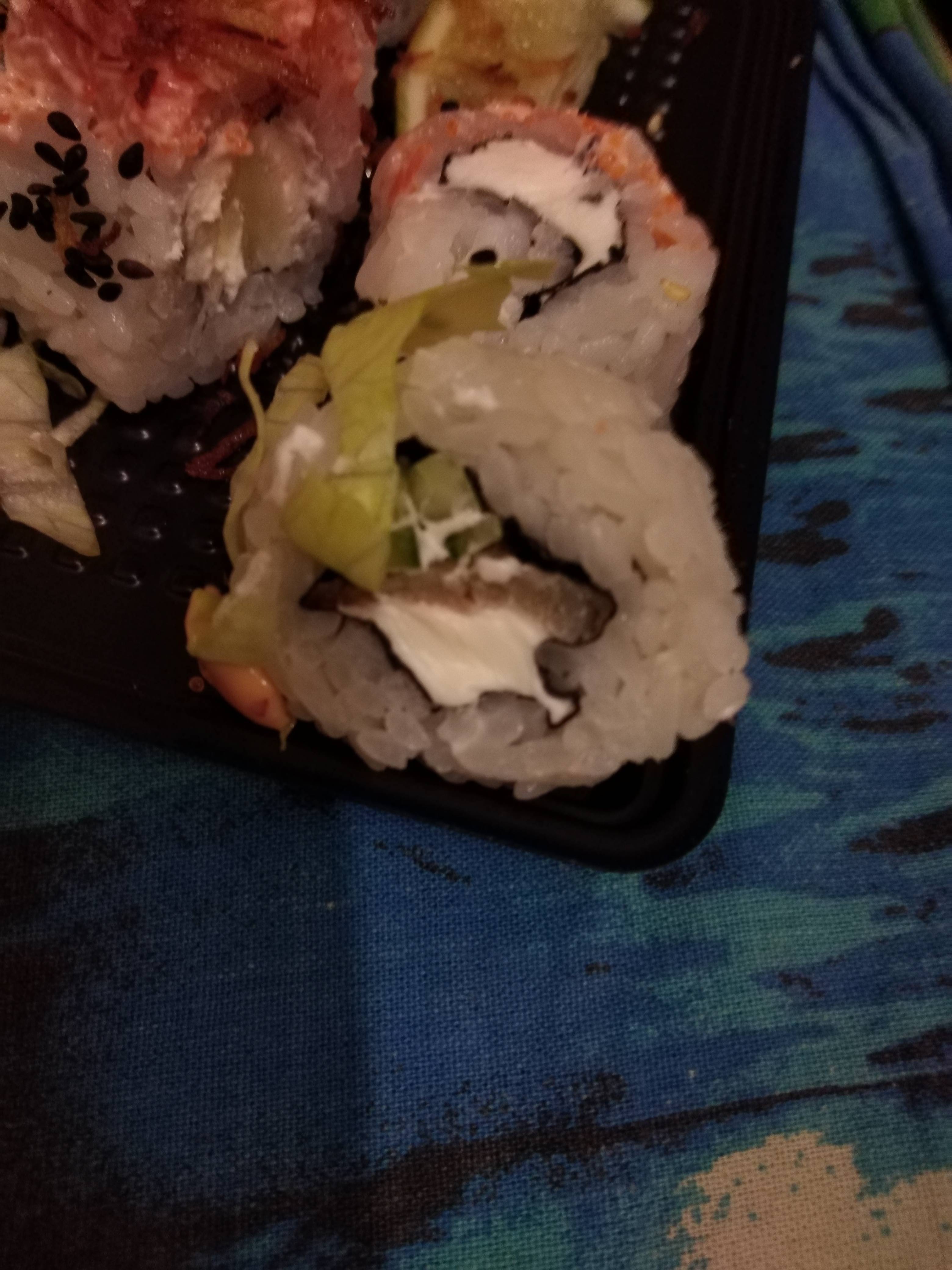 Состав: японский омлет, рис, нори, соус Унаги, кунжут белый