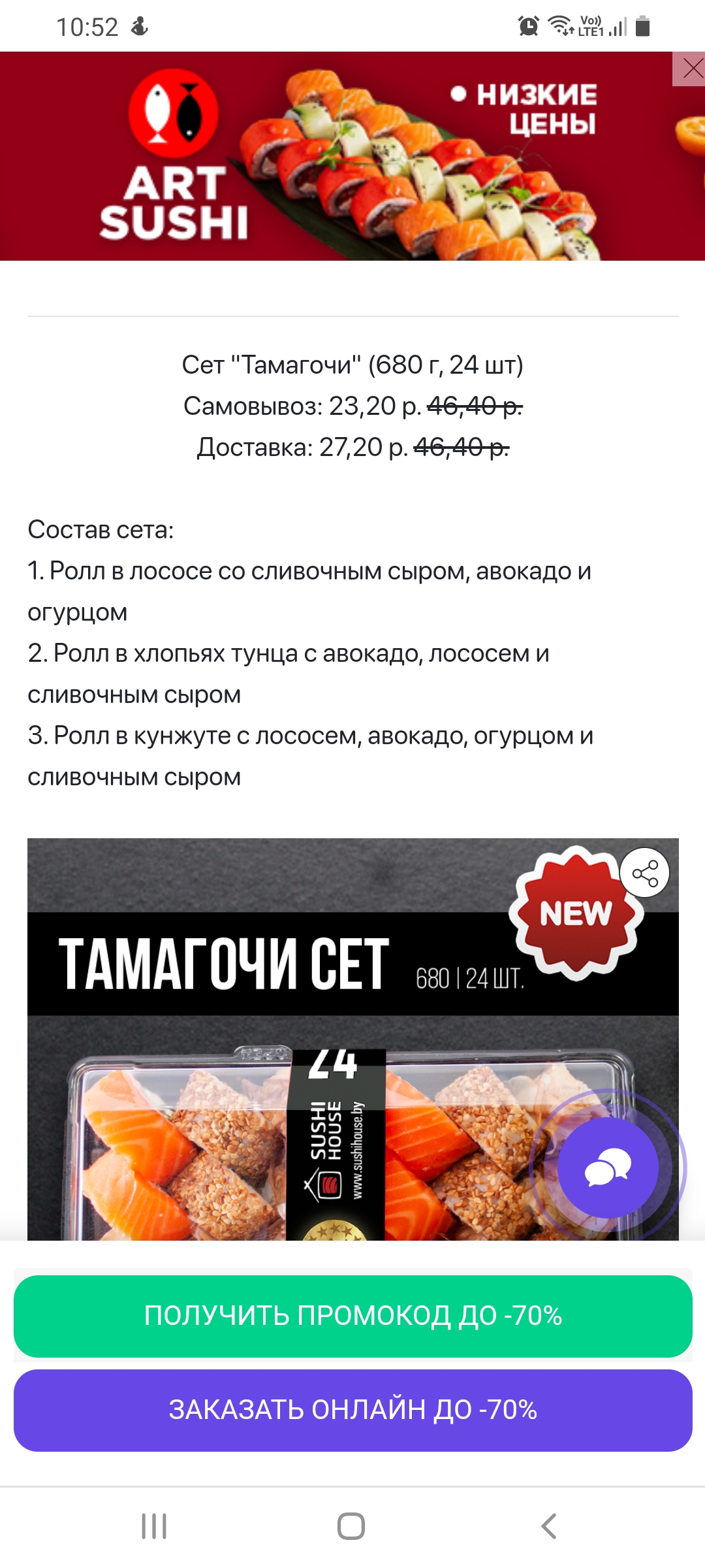 - Промокод дает право на скидку до 59% на сет "Анатолий доплатит" от "SUSHI HOUSE"