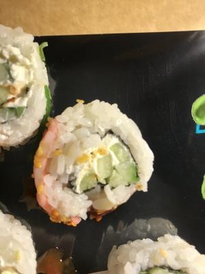 Состав: краб микс, сыр чеддер, огурец, чипс бекона, сливочный сыр, соус терияки, кляр, сухари панко